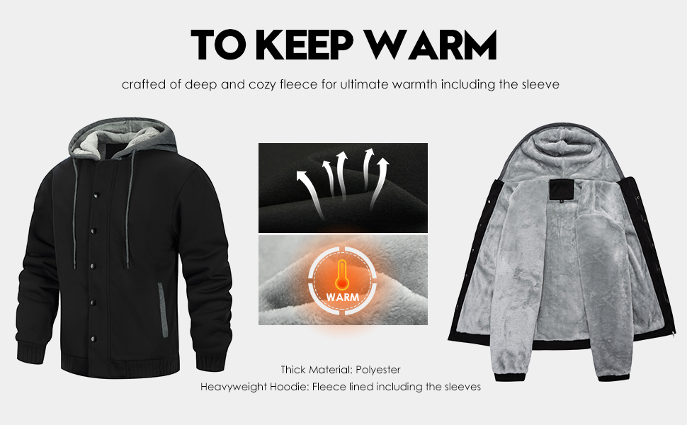 • سترة بغطاء للرأس للشتاء الدافئ: ناعمة ومريحة، مبطنة بصوف الشيربا السميك والناعم تبقيك دافئًا ومرتاحًا في الطقس البارد