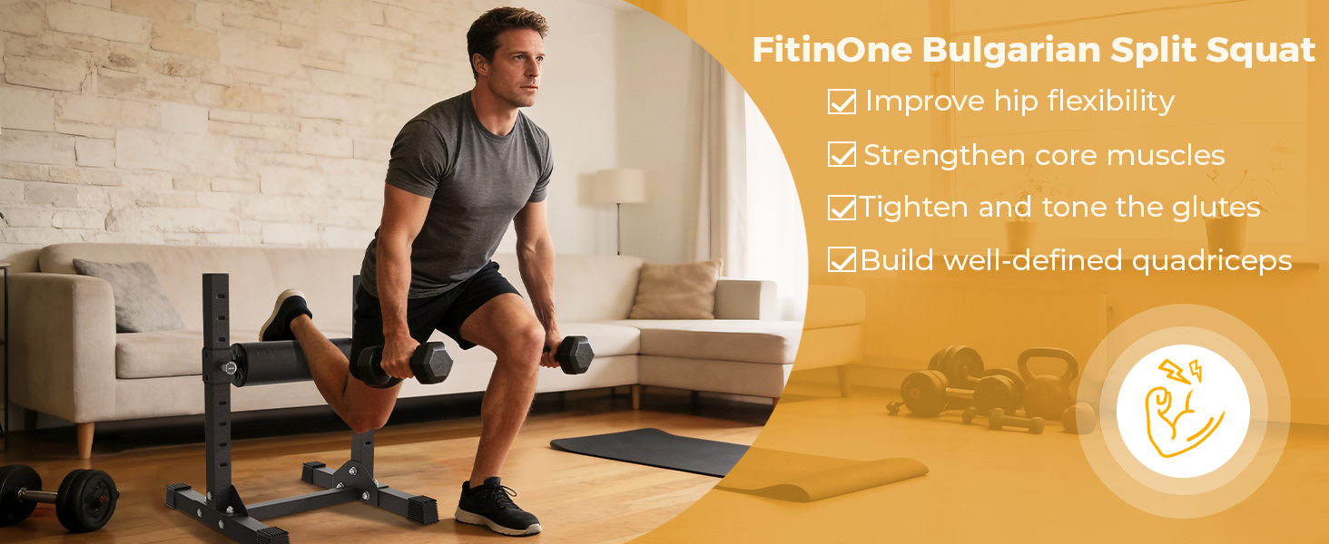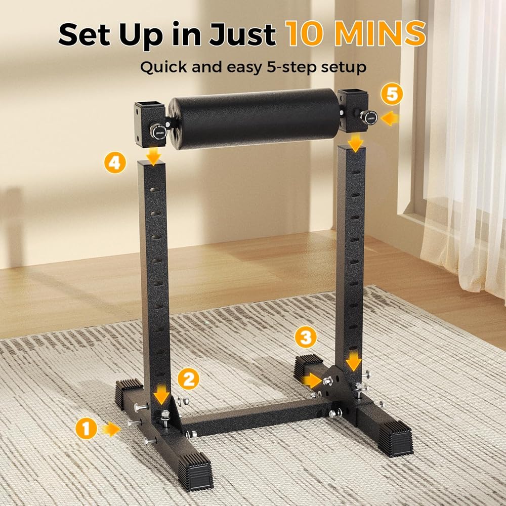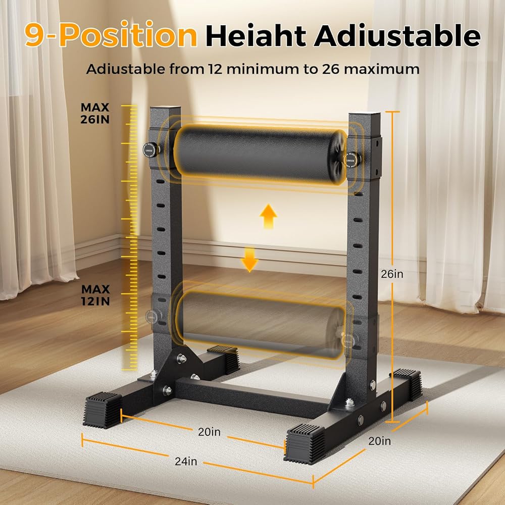 【9 مستويات ارتفاع قابلة للتعديل】يتميز حامل القرفصاء البلغاري من FitinOne بـ 9 إعدادات لارتفاع الأسطوانة، مما يسمح لك بتعديله حسب احتياجاتك وتكييفه بشكل مثالي مع القرفصاء أو القرفصاء المنفصل أو تدريب القرفصاء على ساق واحدة.