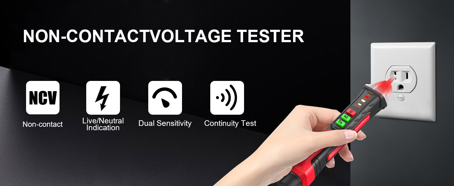 • 【بسيط وآمن للاستخدام المنزلي】 مصمم للجميع، وليس للمحترفين فقط. ما عليك سوى وضع الطرف بالقرب من سلك أو منفذ للكشف عن الجهد الكهربي (12 فولت - 1000 فولت) دون لمس أي أسلاك عارية. إنها أسهل طريقة للبقاء آمنًا أثناء إصلاحات المنزل ومشاريع الأعمال اليدوية