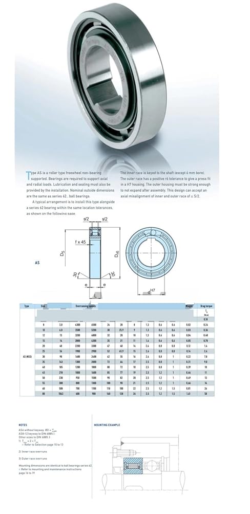 AS25 One Way Clutches Roller Type (25x52x15mm) One Way Bearings