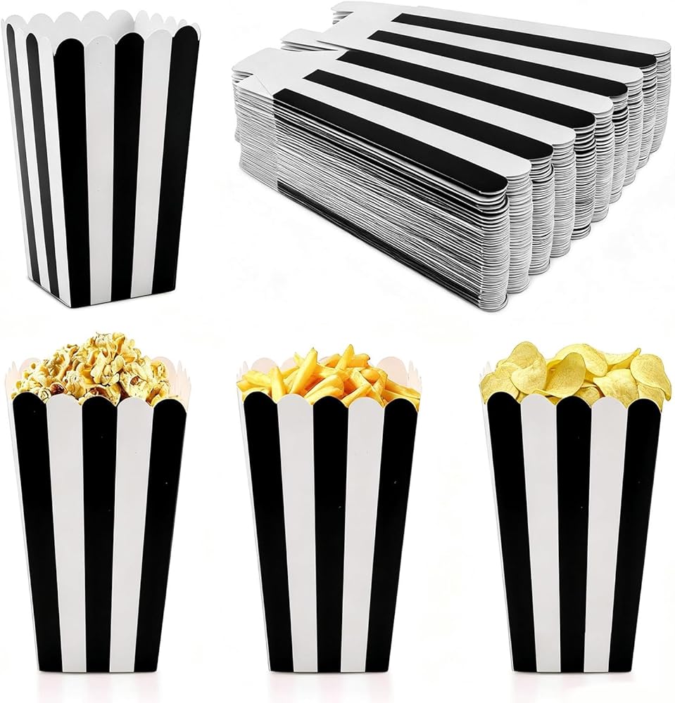 تصميم كلاسيكي - تتميز صناديق الفشار الليلية هذه للحفلات بتصميم مخطط كلاسيكي وتمثل ديكورًا ممتعًا واحتفاليًا ومريحًا.