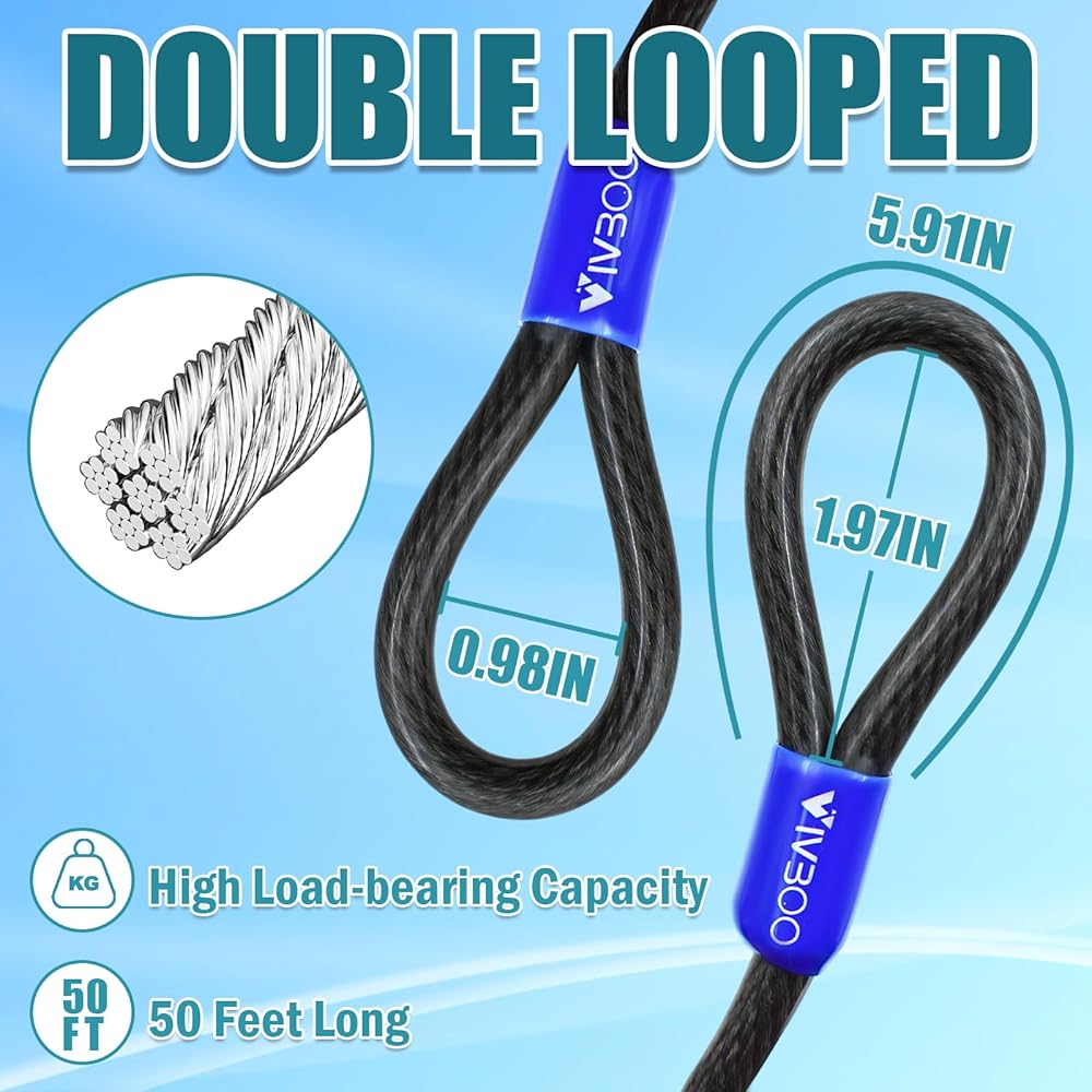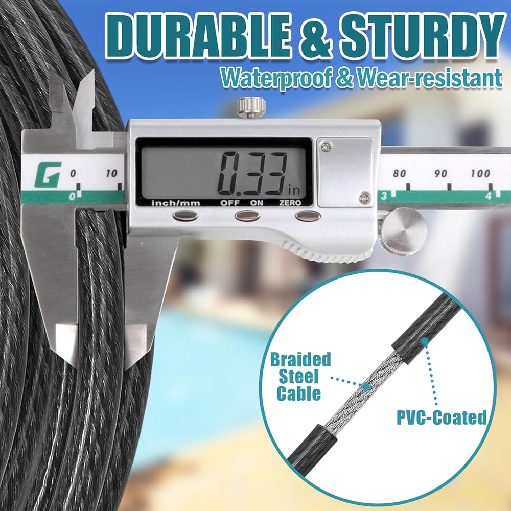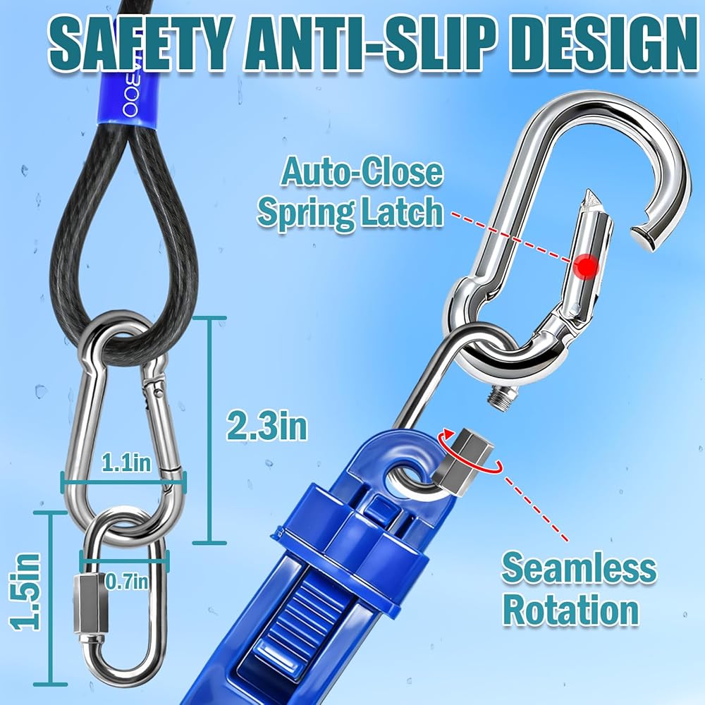 حماية مستمرة: قلب فولاذي منسوج يقاوم التوتر ويقلل من خطر الكسر؛ يوفر طلاء PVC أداءً مقاومًا للماء والصدأ والقطع. يتيح الخطاف ذو الحلقة المزدوجة الاستخدام الثابت في الهواء الطلق على المدى الطويل.