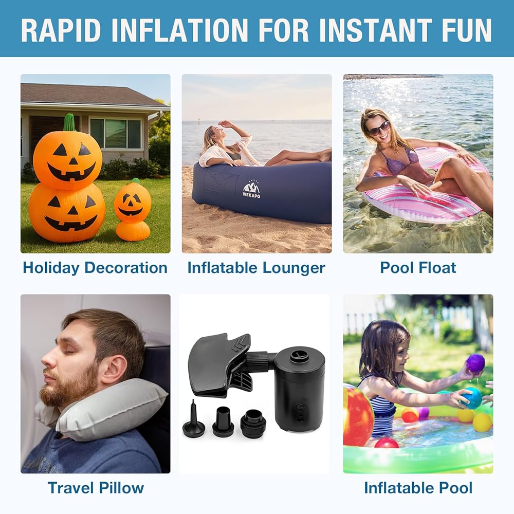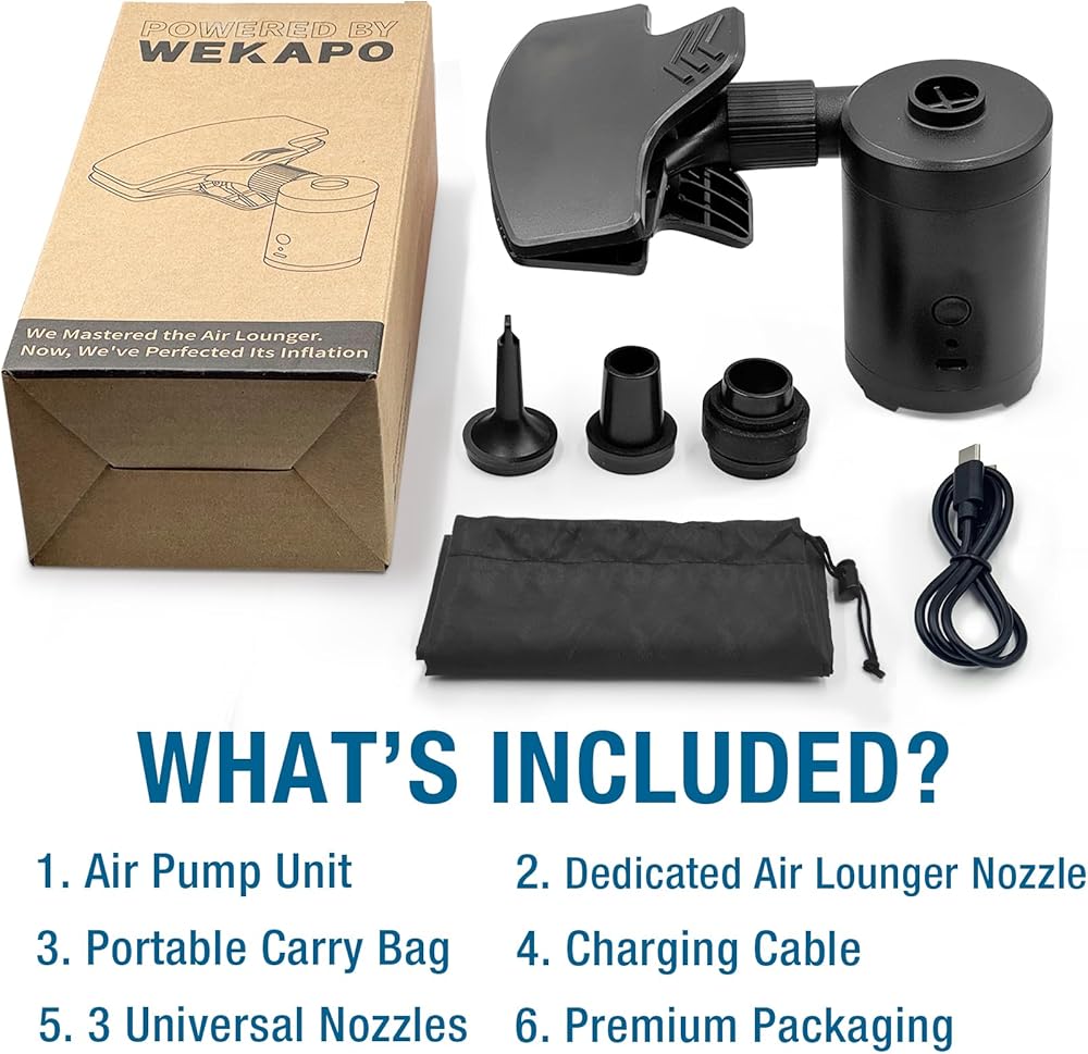 مجموعة مضخة هواء كهربائية محمولة وفوهة من ويكابو لكراسي الهواء - نفخ سريع وسهل، متوافقة مع كراسي الهواء، وعوامات حمام السباحة، والمراتب، والمعدات الخارجية