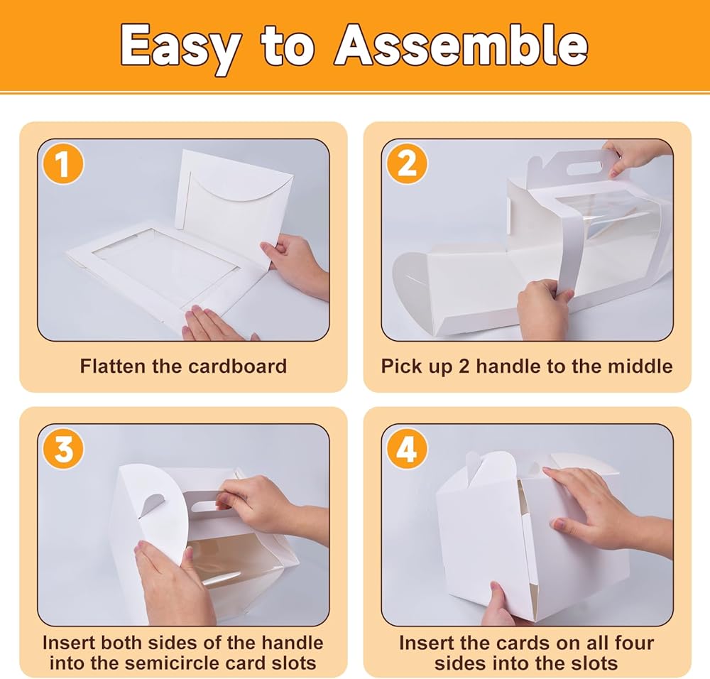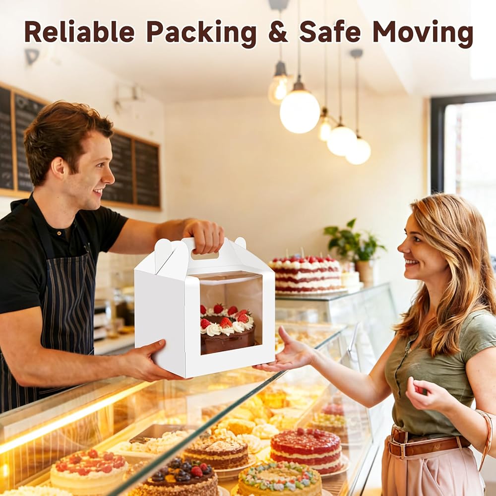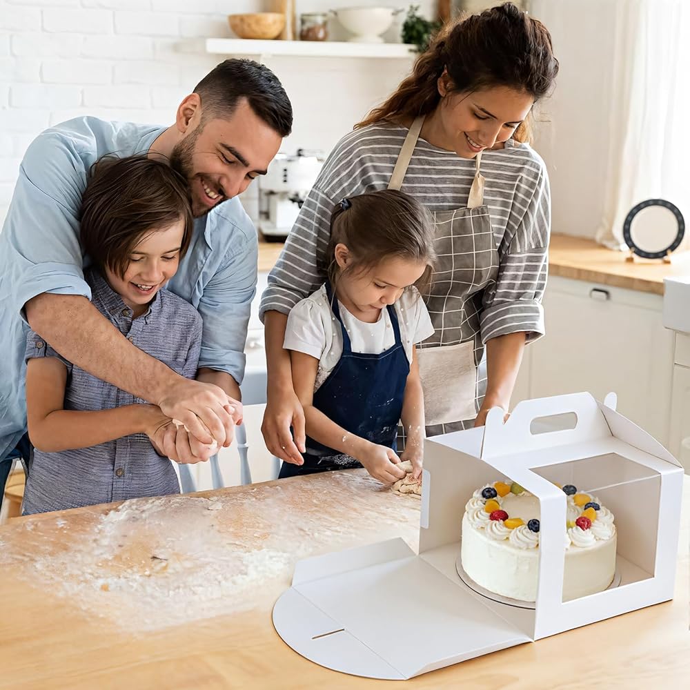 【صندوق الكيك مع نافذة شفافة】يتميز صندوق الكيك الطويل بتصميم خاص مع نافذة شفافة في الأعلى والجانب، وهي طريقة مثالية لعرض كعكتك، فهو يبدو احترافيًا ويعطي رؤية رائعة للكعكة دون الحاجة إلى فتحها. ساعد عملك في تزيين الكيك على الوصول إلى آفاق جديدة!