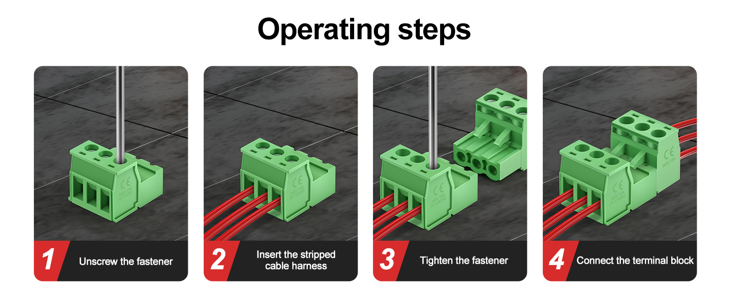- Material: The screw terminal block is made from high-strength PA66 nylon material with good heat resistance and wear resistance