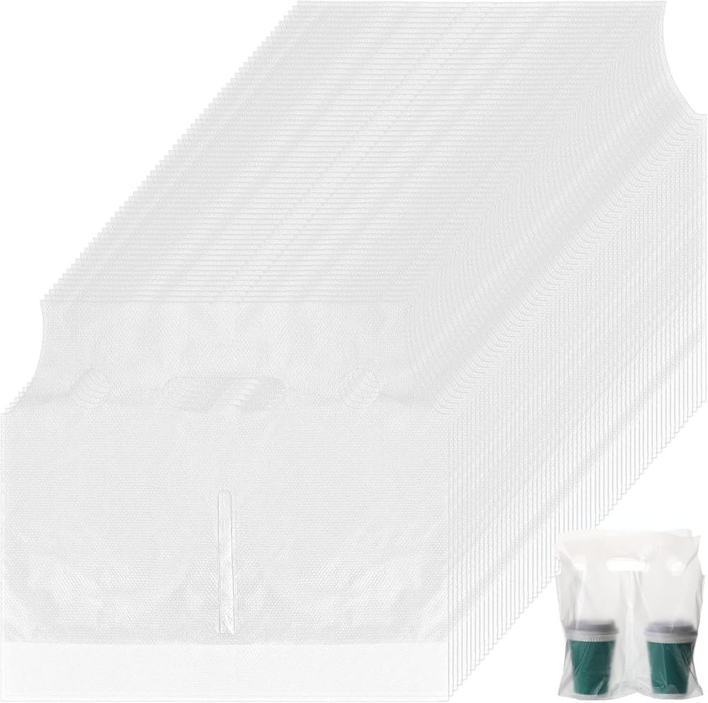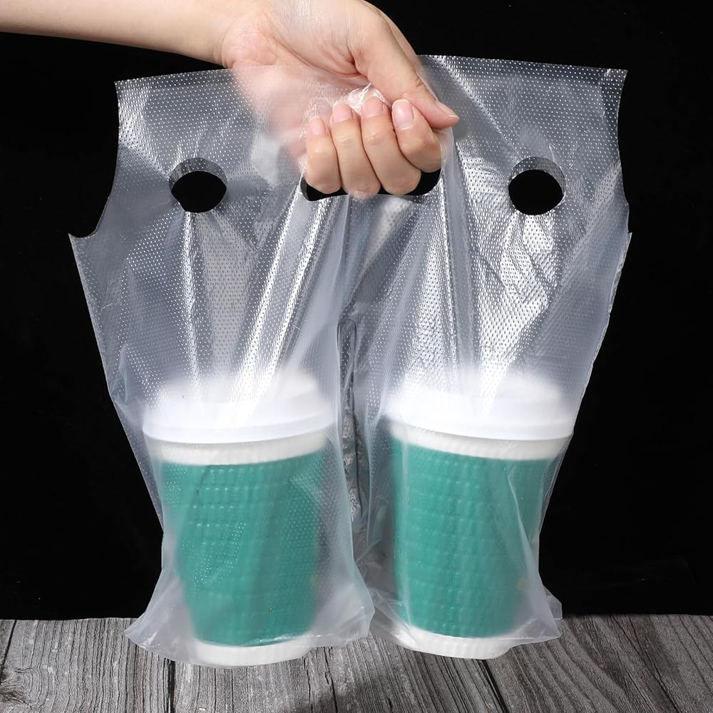 • Convenient Two-Cup Carrier Design: handle drinking poly bags designed with two securely sealed compartments and a comfortable die-cut handle, these carriers maintain balance while preventing spills. perfect for transporting two beverages simultaneously with one hand, keeping hands protected from hot or cold surfaces.