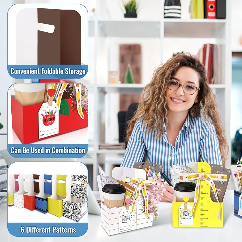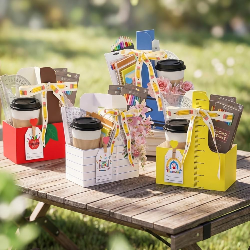 【استخدام مفيد متعدد المشاهد】تم تصميم حاملات الأكواب المصنوعة من الورق المقوى هذه خصيصًا لأسبوع تقدير المعلمين، وموسم التخرج، وهدايا نهاية العام. تتميز البطاقات المتضمنة بمشاعر احترافية مثل "شكرًا لك" و"أسبوع تقدير المعلم السعيد"، مما يجعل حامل الحامل المكون من كوبين خيارًا مثاليًا للحفلات المدرسية، أو أحداث PTA، أو لحظات بطل توصيل المشروبات المكتبية.