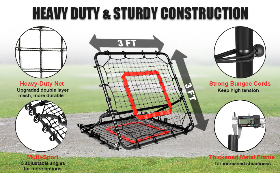 هيكل متين مناسب لجميع الأحوال الجوية: شبكة البيسبول المرتدة مصنوعة من إطار فولاذي سميك وشديد التحمل ومواد شبكية متينة، شبكة البيسبول المرتدة مصممة لتحمل جميع الظروف الجوية. سواء كان المطر الربيعي أو حرارة الصيف، فإن الشبكة لن تتمزق أو تتمزق، مما يضمن أداء طويل الأمد لجلسات التدريب الخاصة بك.