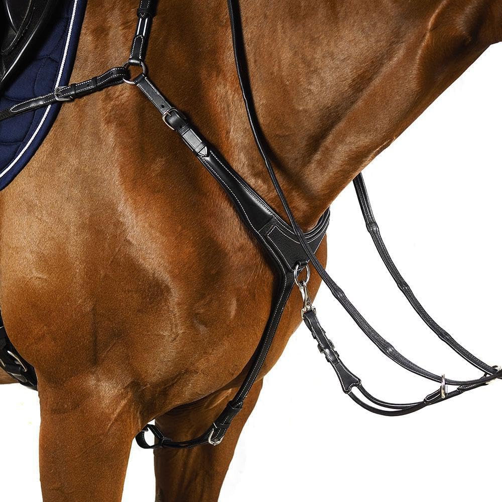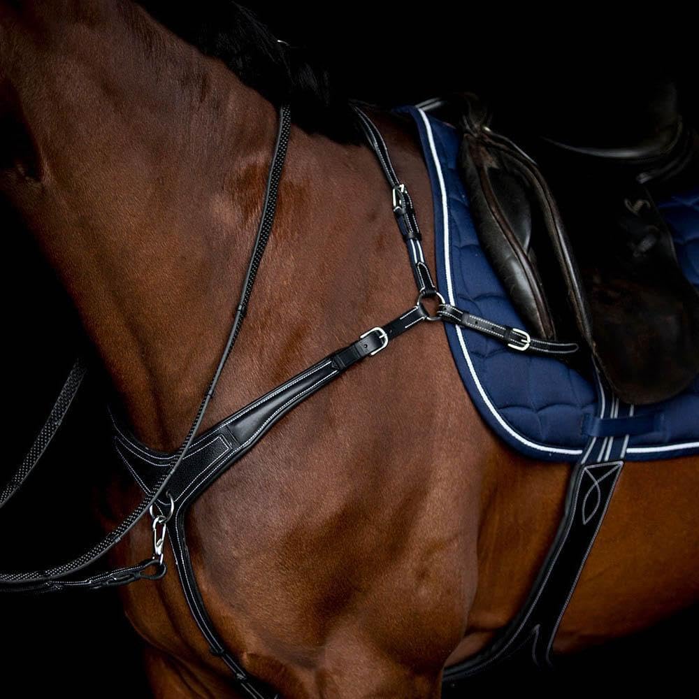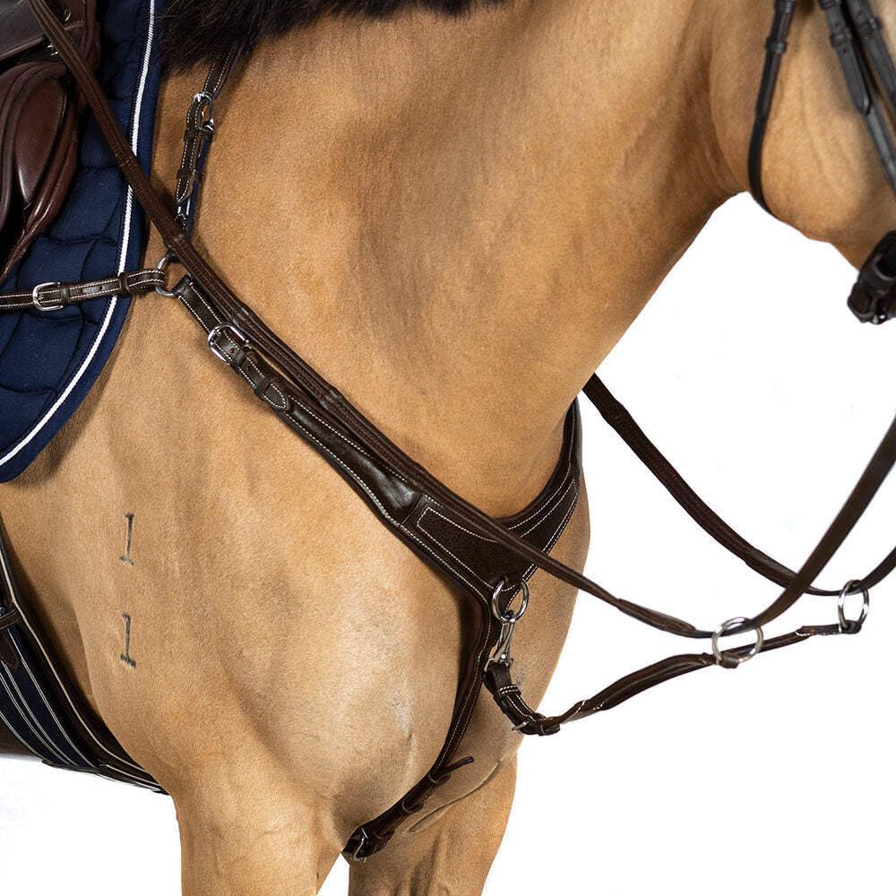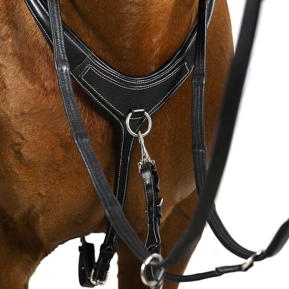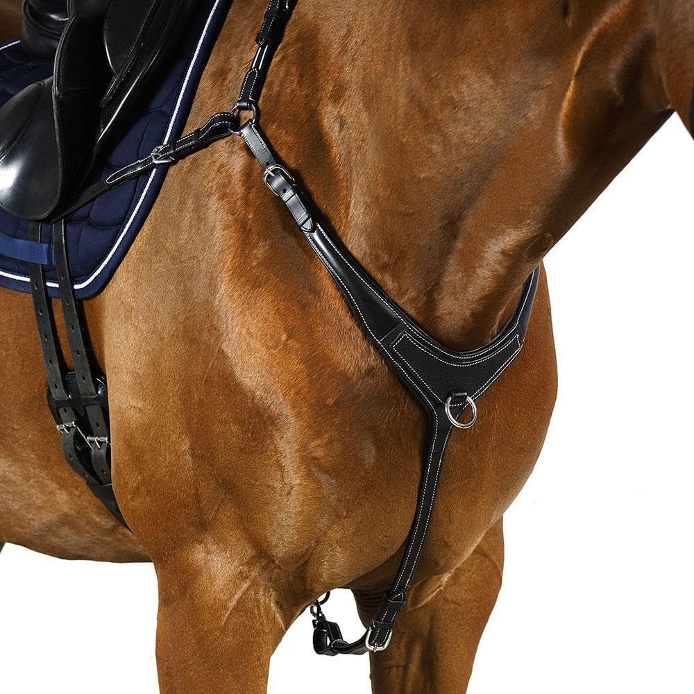 Made from the finest quality English leather, white stitched for style with a front grain overlay panel, this breastplate means you don't have to sacrifice style for comfort and functionality.