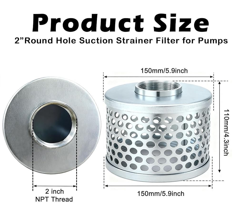 【Note】Please make sure your hose external thread is 2" to match the strainer of 2" inner thread