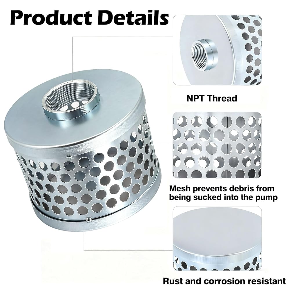 Robust Material - the water pump hose strainer is crafted with galvanized carbon steel, a material proven to offer protection from corrosion and rust