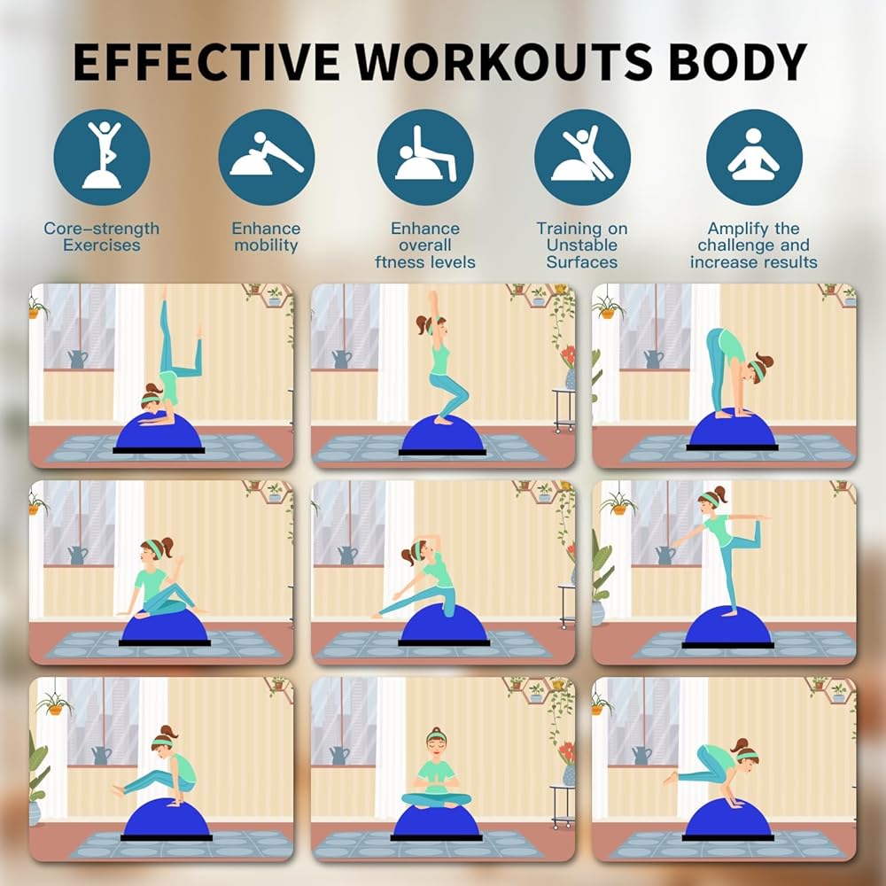 • 🧘‍♀️【𝐕𝐞𝐫𝐬𝐚𝐭𝐢𝐥𝐞 𝐓𝐫𝐚𝐢𝐧𝐢𝐧𝐠 𝐌𝐨𝐝𝐞𝐬】يوفر التصميم ثنائي الجوانب لنصف كرة التوازن هذا المرونة: ضع الجانب المسطح لأسفل من أجل تدريبات الثبات (القرفصاء، والطعنات) أو اقلبها على الجانب المنحني لأسفل للقيام بحركات متقدمة (تمارين الضغط، واللوح الخشبي، والتجشؤ). مثالي لإعادة التأهيل والعلاج الطبيعي وHIIT والبيلاتس وجميع مستويات اللياقة البدنية