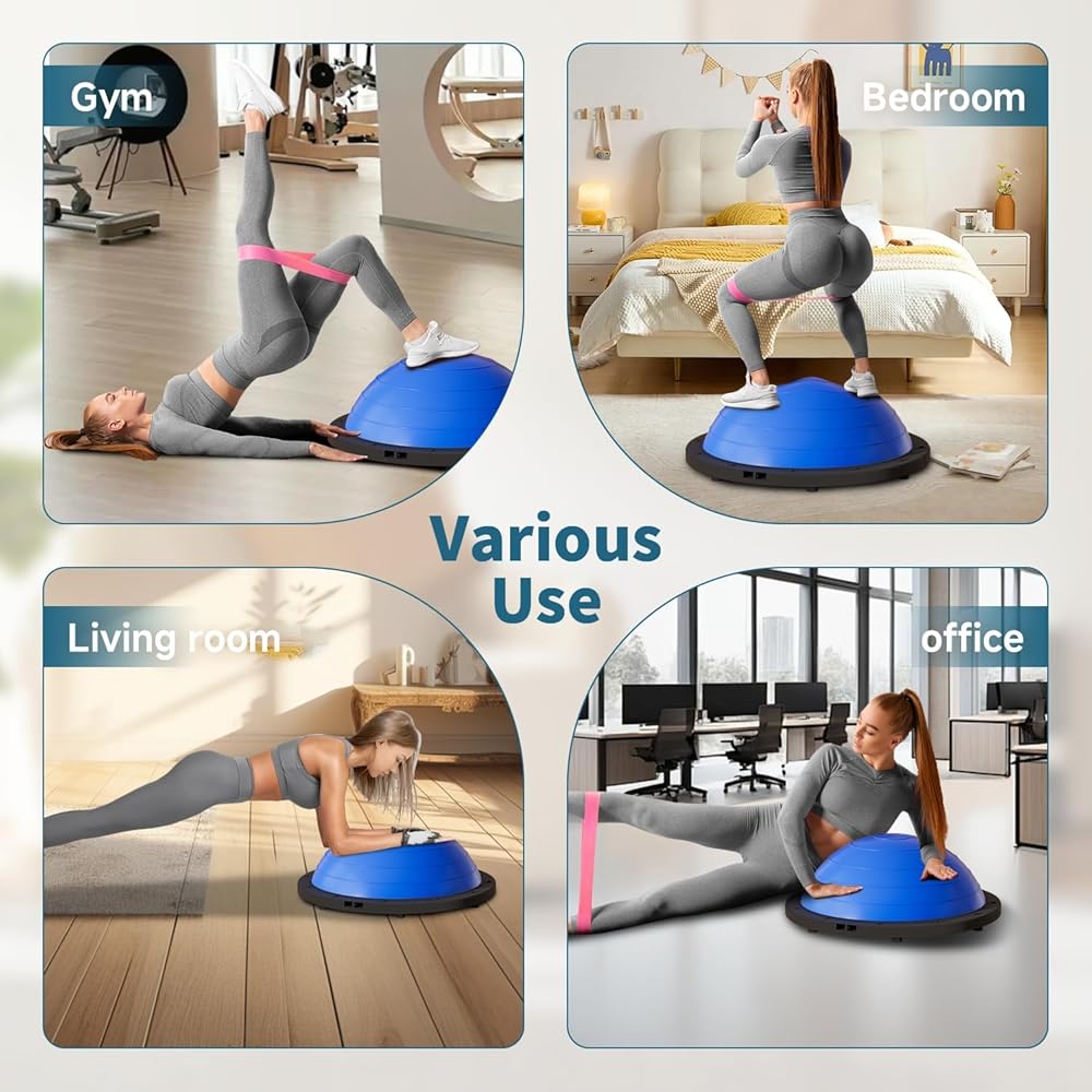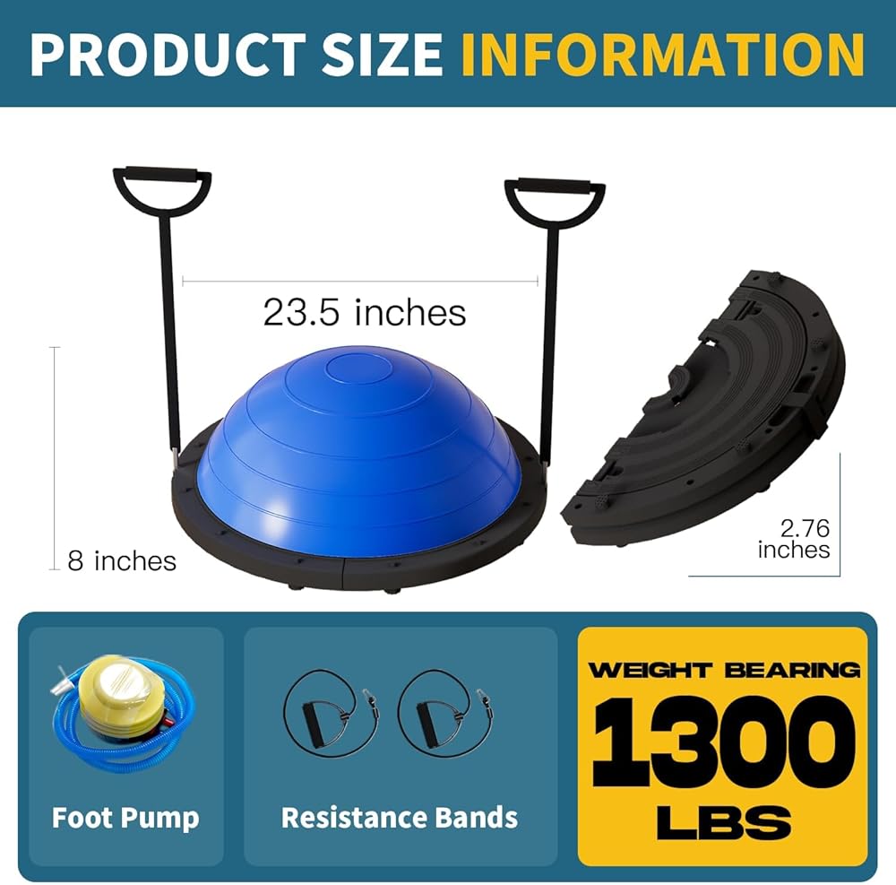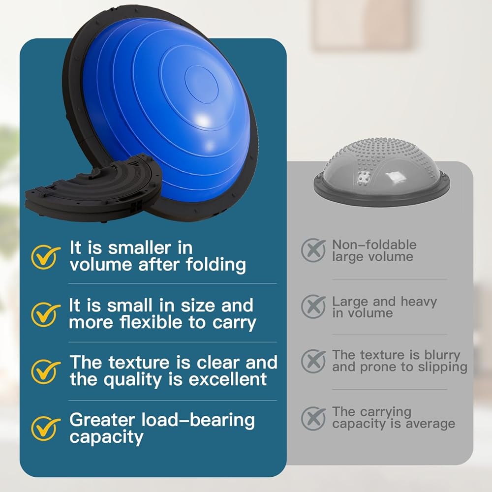 كرة توازن قابلة للطي من Vtory، مدرب توازن نصف الكرة، كرة ثبات بسعة 1300 رطل، نصف كرة يوجا 23.5 بوصة، مع حزام مقاومة ومضخة قدم، مانعة للانزلاق