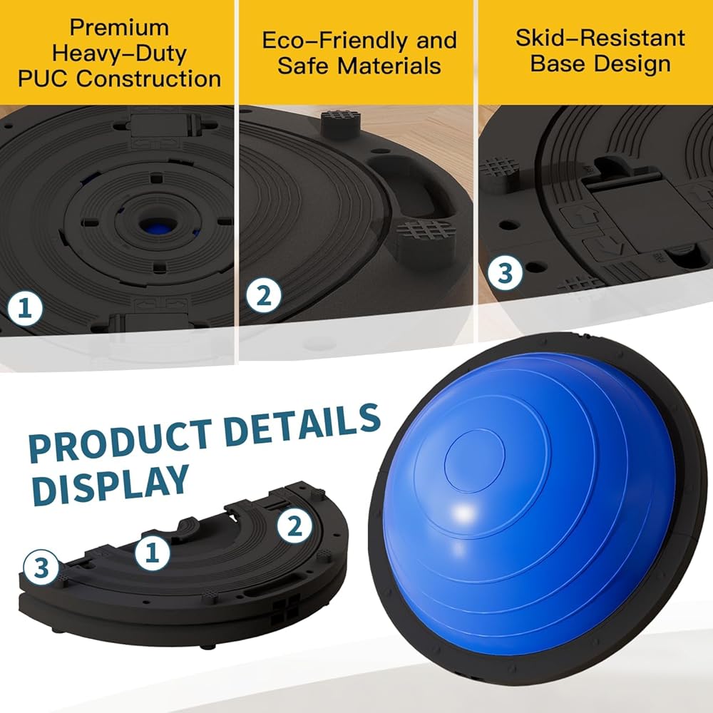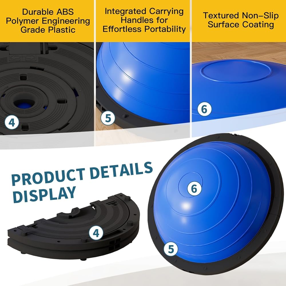 • 🧘‍♀️【𝐏𝐫𝐞𝐦𝐢𝐮𝐦 𝐃𝐞𝐬𝐢𝐠𝐧】يتميز مدرب التوازن نصف الكرة هذا بسطح PVC مزخرف + قاعدة TPR مضادة للانزلاق + 6 أقدام مضادة للانزلاق لتحقيق ثبات فائق. تصميم مضاد للانفجار بسمك 7 مم يدعم ما يصل إلى 1300 رطل. خفيف الوزن (8.7 رطل) ومحمول بمقابض.