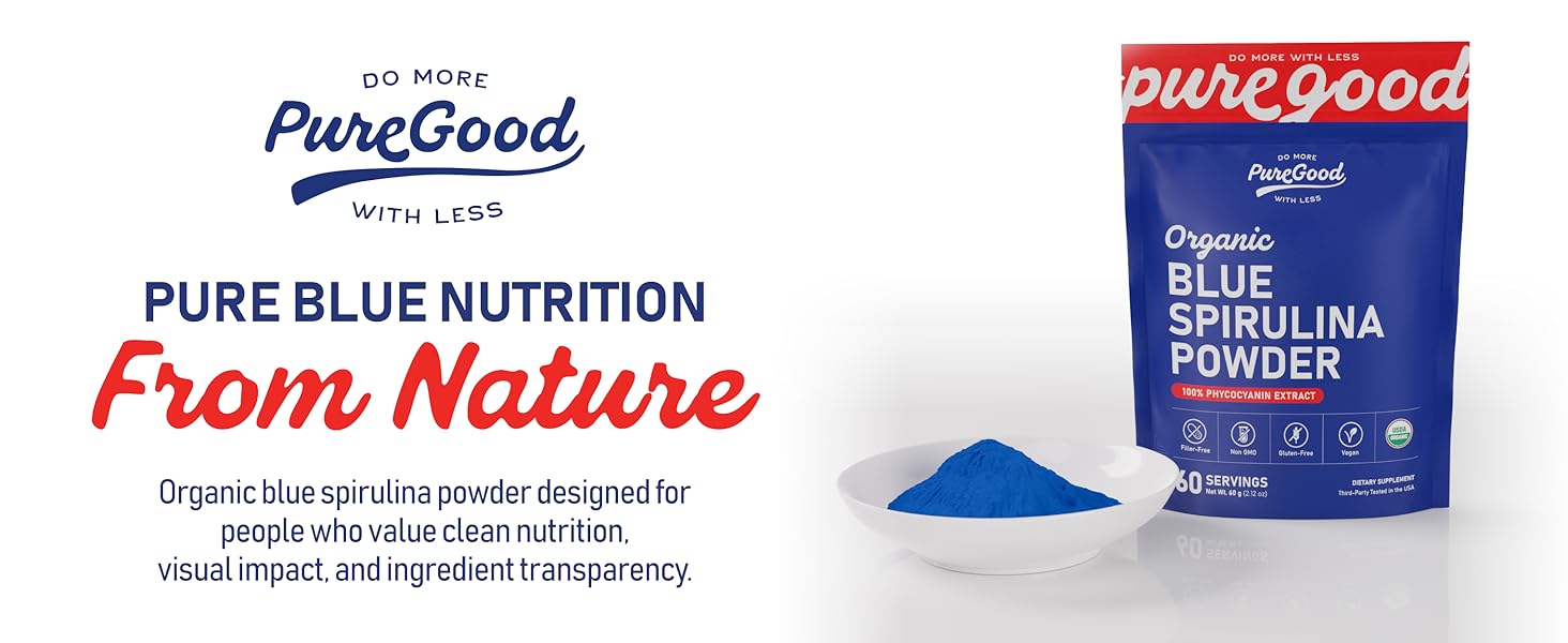 مسحوق سبيرولينا الأزرق العضوي – تم اختباره من قبل طرف ثالث – لون طبيعي نابض بالحياة للعصائر والخبز والمشروبات – نباتي وخالي من الغلوتين – 60 حصة (60 جم) in Kuwait