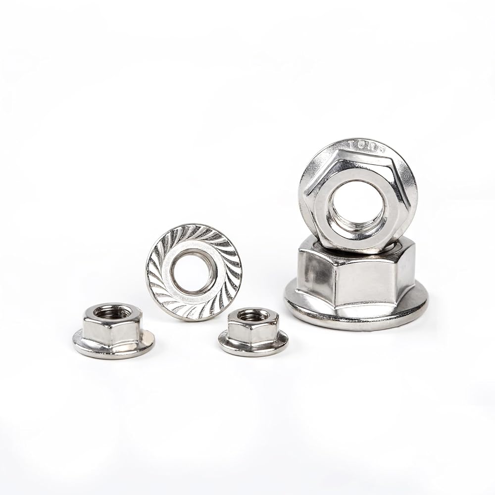 Serrated Hex Flange Nuts | 10-Pack Stainless Steel Anti-Loosening Fasteners
