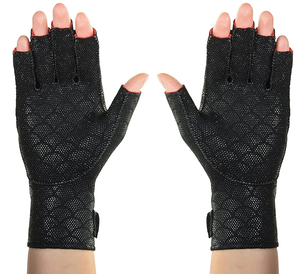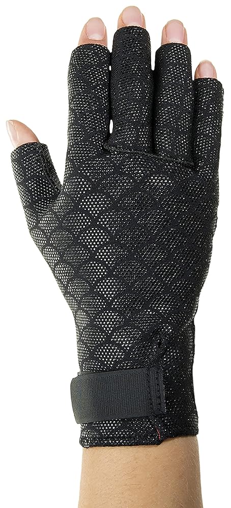 Gloves are anatomically shaped and secured with a fastener. They provide warmth and even compression. A fastener allows for added comfort and fit and the outer layer is textured to provide additional grip. Sold in pairs.