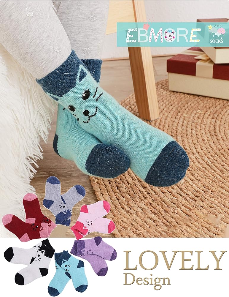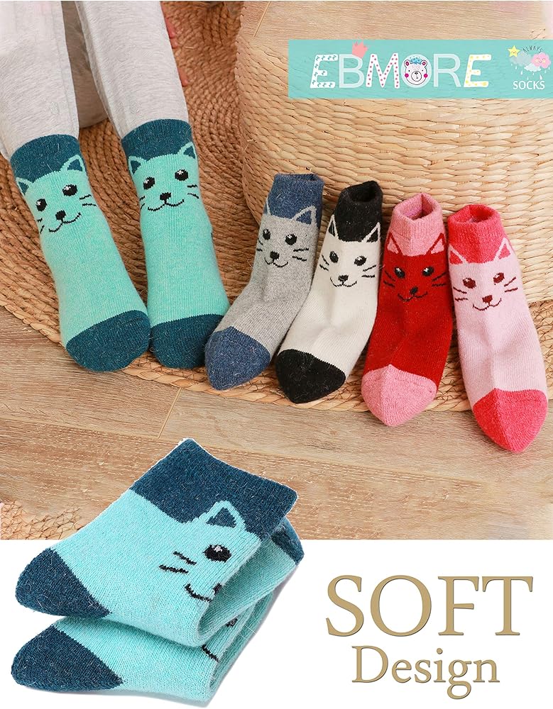 جوارب صوفية فاخرة: الجوارب الصوفية للأولاد والبنات مصنوعة من مزيج من الصوف والقطن الفاخر. فهي حرارية وسميكة، مما يحافظ على راحة ودفء أقدام الأطفال. جوارب EBMORE الصوفية مثالية لأطفالك المحبوبين!