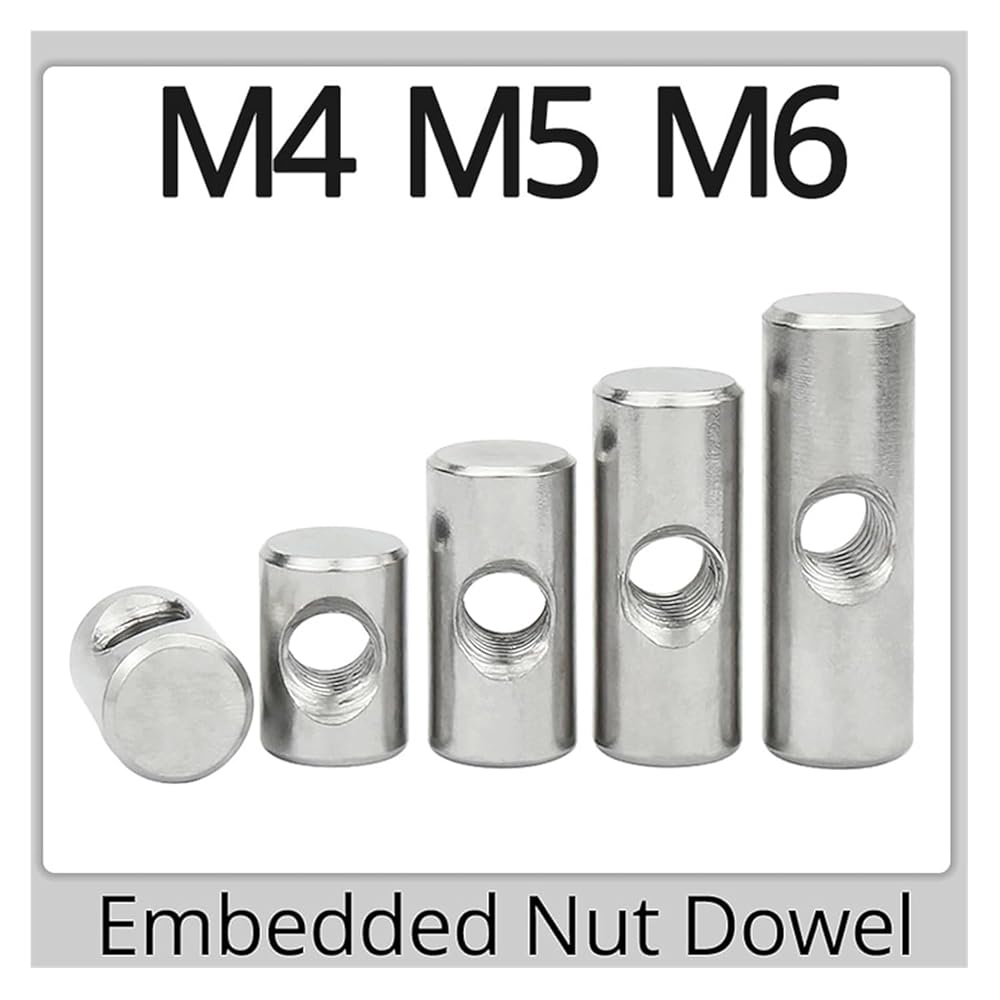 Barrel Bolts, M4 M5 M6 Cylindrical Pin Stainless Steel Dowel Cross Hole Hammer Embedded Nut(OD6 M4x10(5PCS))
