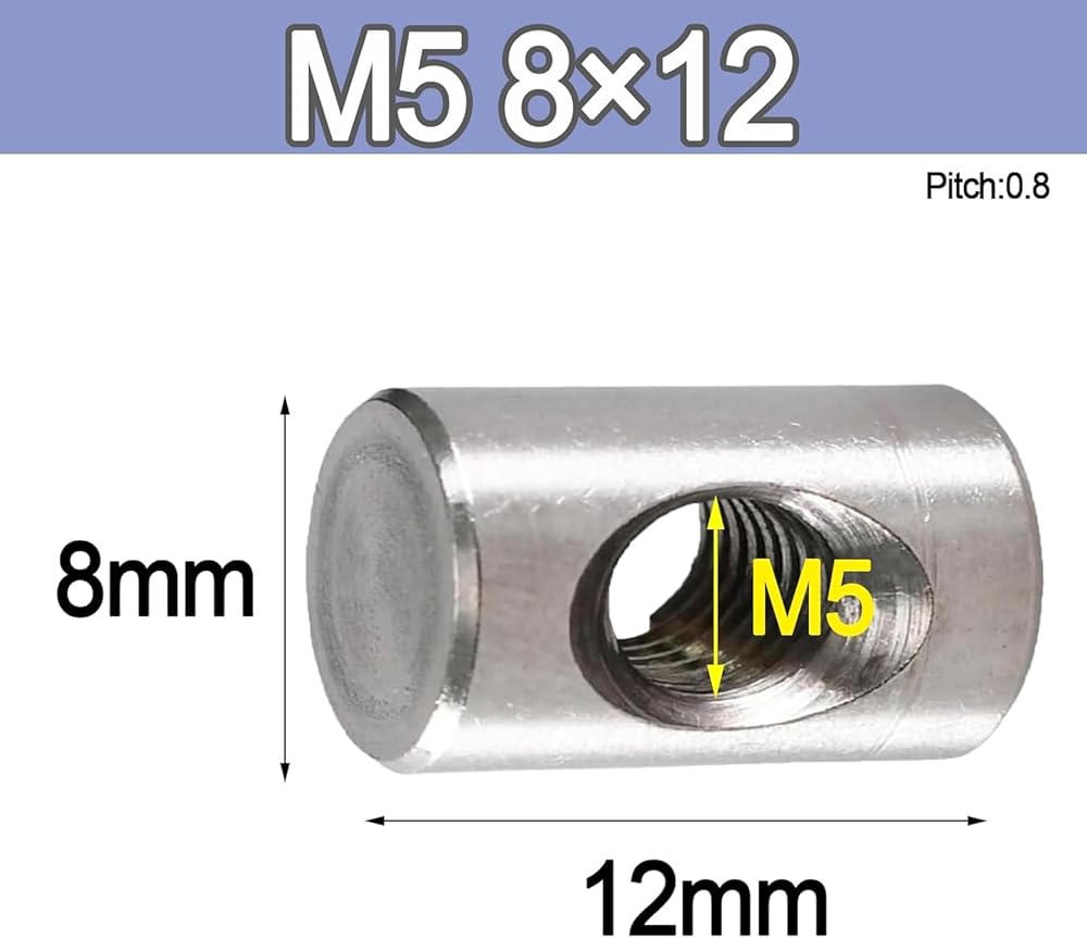 Barrel Bolts, M4 M5 M6 M8 Cylindrical Pin Dowel Cross Hole Hammer Embedded Nut for Wood Furniture(5pcs,M5 8x12)