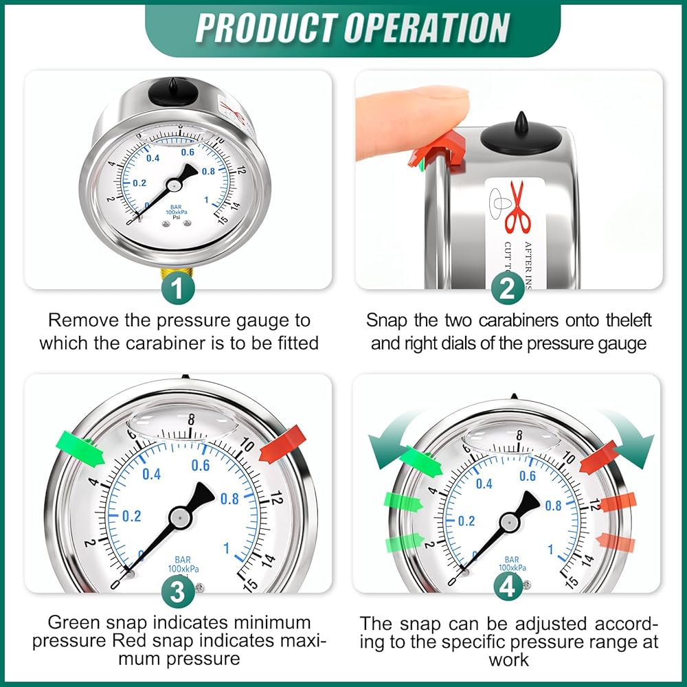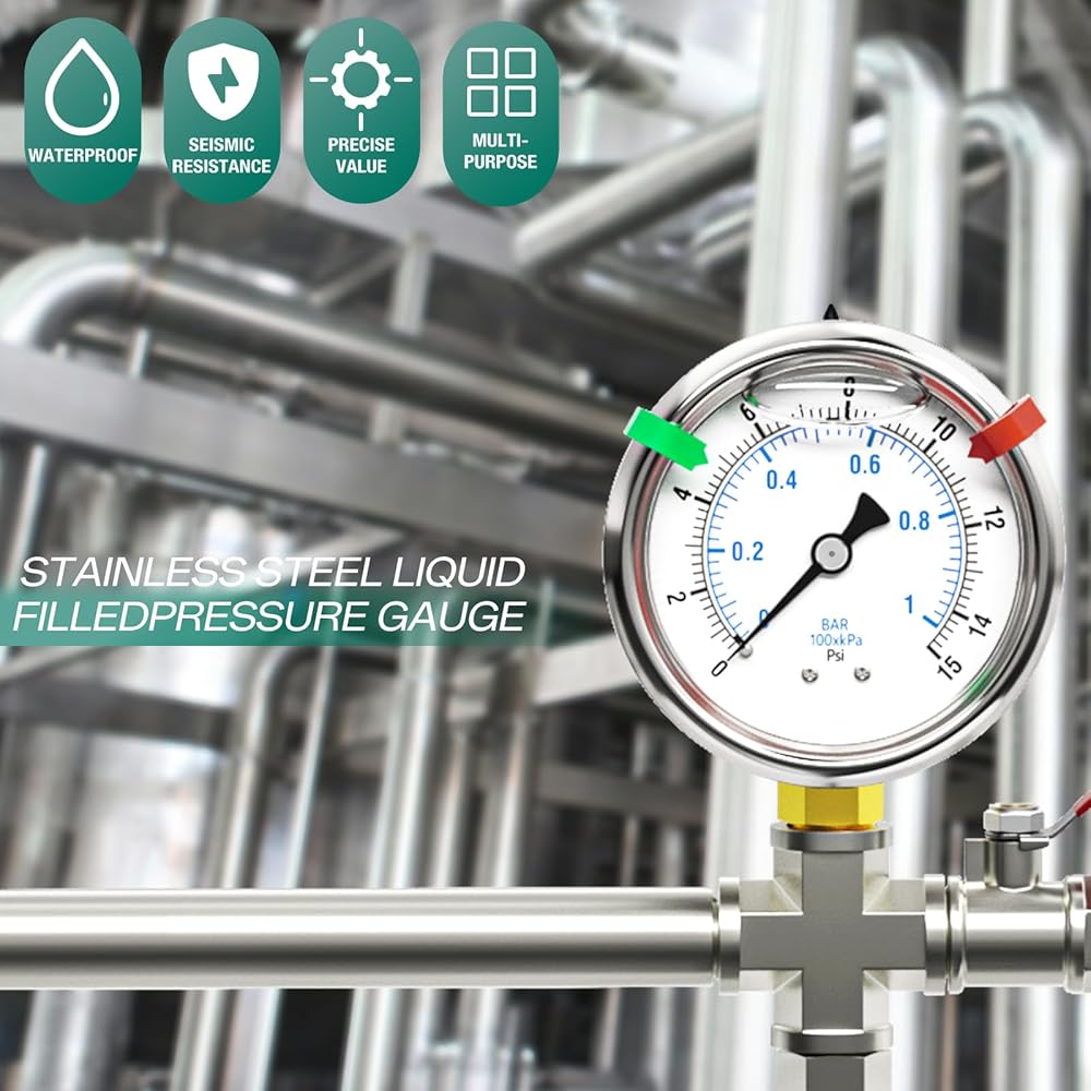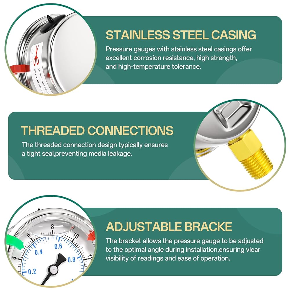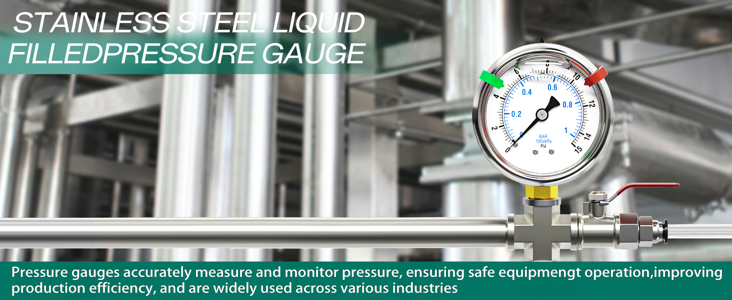 [ميزات المادة] هيكل من الفولاذ المقاوم للصدأ 304، مقاوم للتآكل، مملوء بالجلسرين للحصول على قراءات ثابتة ولتجنب تلف الاهتزاز.
