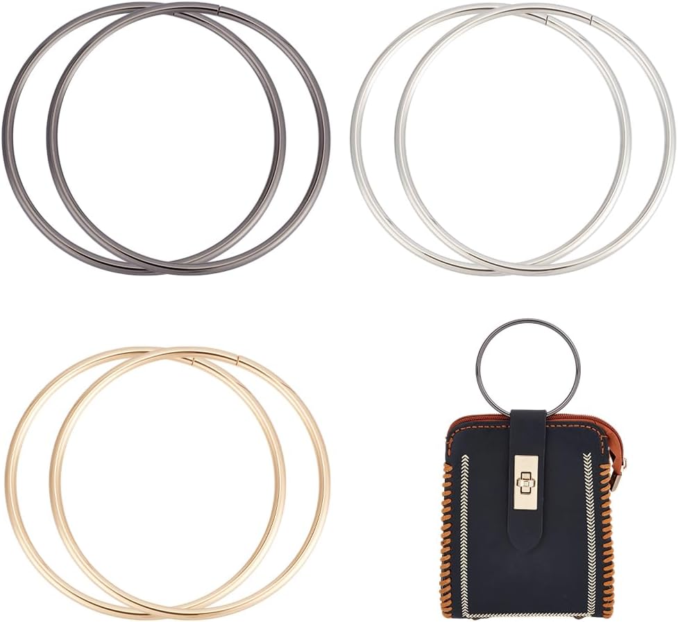 6 قطع من PH PandaHall مقابض حقيبة مستديرة 3 ألوان مقابض محفظة معدنية 3.3 بوصة مقبض حقيبة يد حلقية مزخرفة استبدال مقبض المحفظة للحقائب المنسوجة يدويًا وحقائب اليد وحقائب اليد