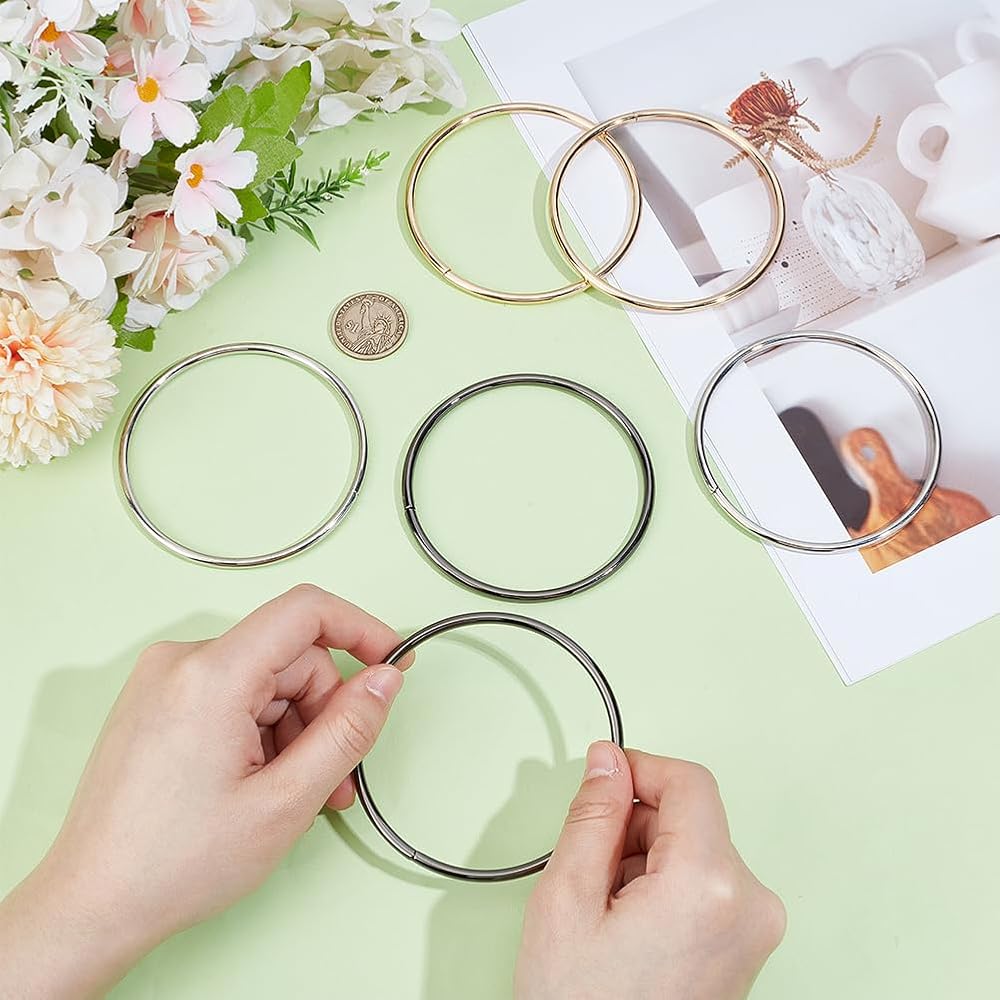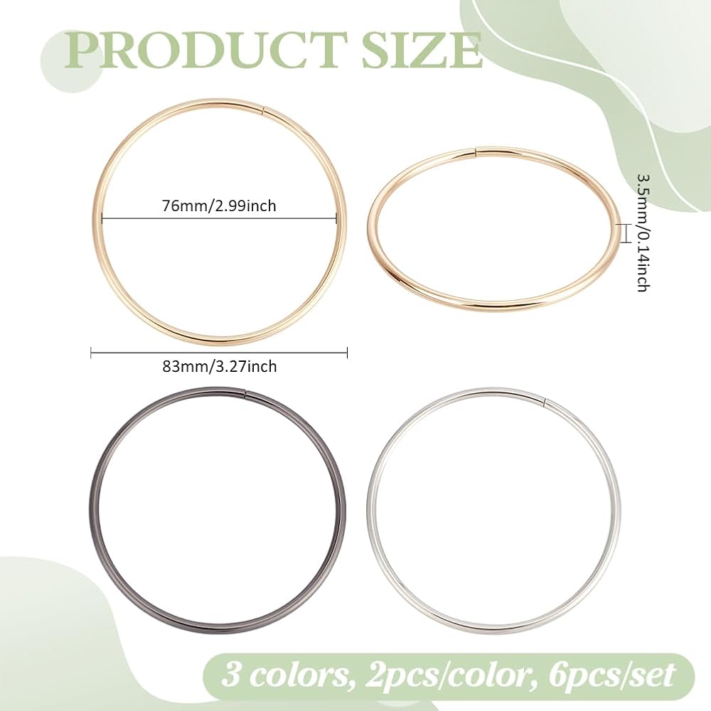 • Package Includes: 6pcs metal handbag handle, in 3 colors, 2pcs/color, enough quantity and colors to meet your handmade needs. Size: about 8.3cm/ 3.3 inch in diameter, 3.5mm thick, 7.6cm/ 3 inch inner diameter. Nice for DIY replacement for purse, handbags
