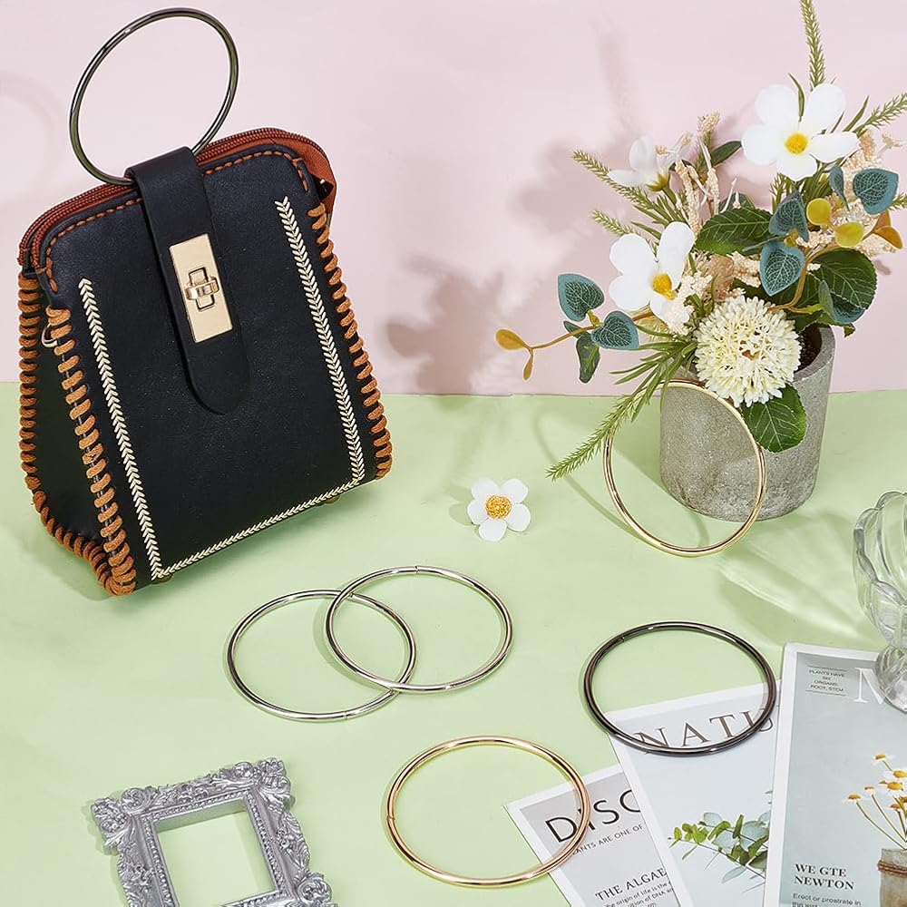 • 3 Colors Ring Purse Handles: Elegant circular metal design with perfect size and different color: light gold, platinum, black, which can match different styles of handmade bags. Stylish design and fine workmanship makes them ideal for many bag styles