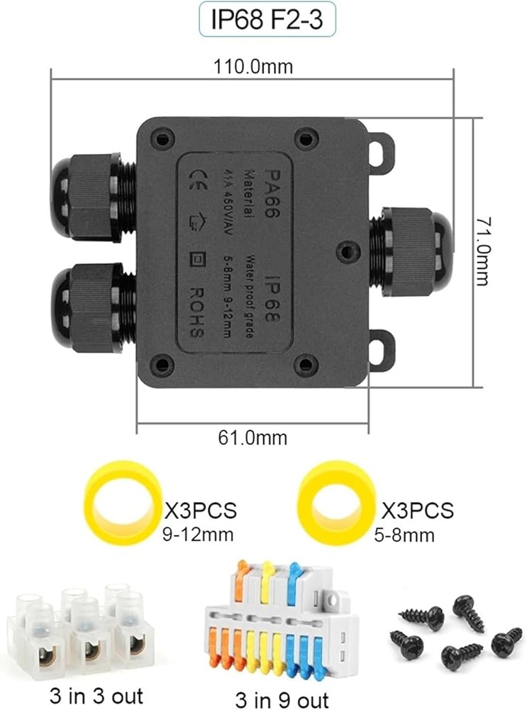 Three-way junction box 5-12mm cable connector with 32A 250V