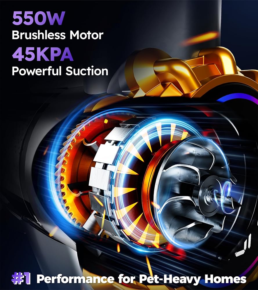 【شفط قوي 550 واط/45 كيلو باسكال، تنظيف عميق في تمريرة واحدة】جرب المحرك بدون فرش بقوة 550 واط الذي تمت ترقيته لعام 2026، والمصمم لتوفير قوة شفط ثابتة تبلغ 45,000 باسكال. على عكس المكانس الكهربائية القياسية التي تعاني من الحطام الثقيل، تقوم هذه المكنسة الكهربائية اللاسلكية بسحب الأوساخ العنيدة والغبار والحطام الكبير وشعر الحيوانات الأليفة من السجاد والأرضيات الصلبة والبلاط على الفور. تحقيق تنظيف فعال وعميق.