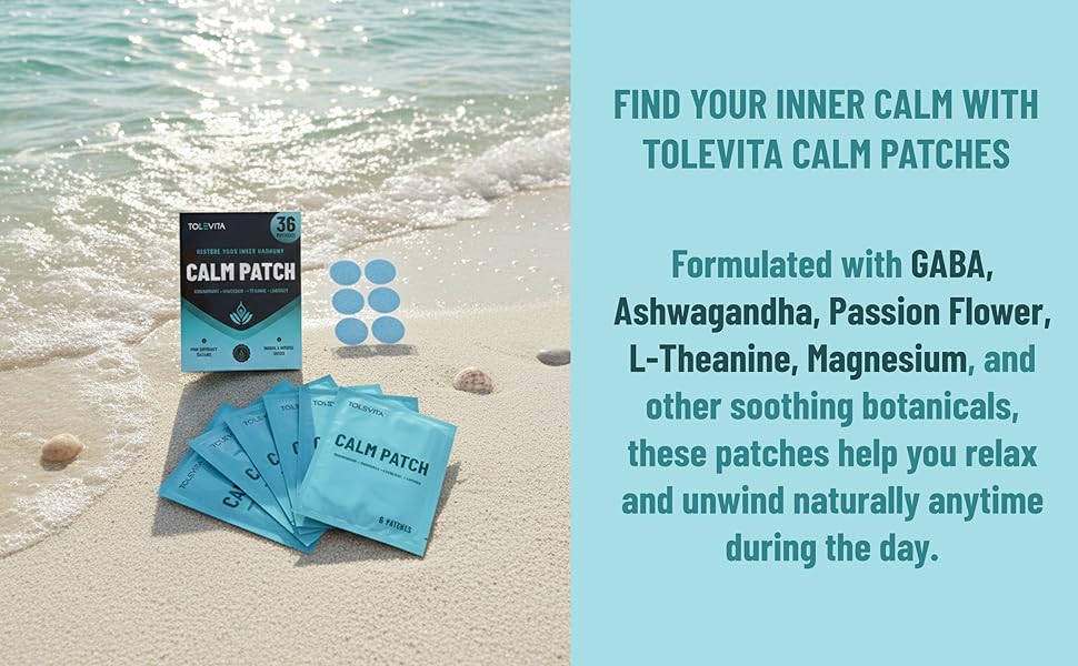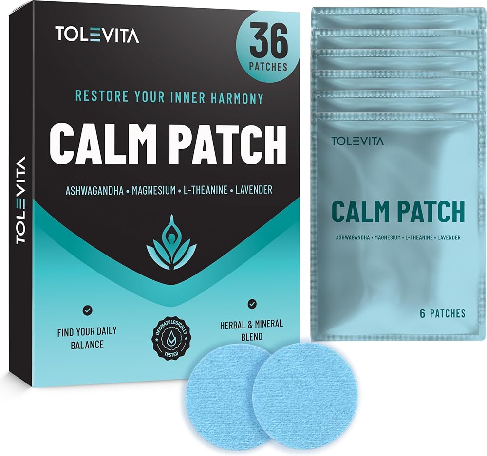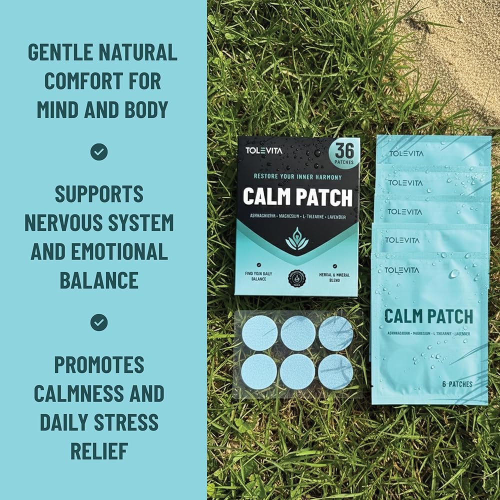 رقعات الهدوء 36 قطعة (أزرق) - الاسترخاء وتخفيف التوتر مع غابا، أشواغاندا، إل-ثيانين، زهرة العاطفة، المغنيسيوم - المزاج العشبي ودعم الهدوء