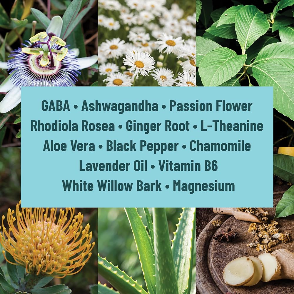 - دعم لطيف للاسترخاء: غني بالجابا والأشواغاندا والثيانين وزهرة العاطفة من أجل الهدوء الطبيعي ودعم التوتر.