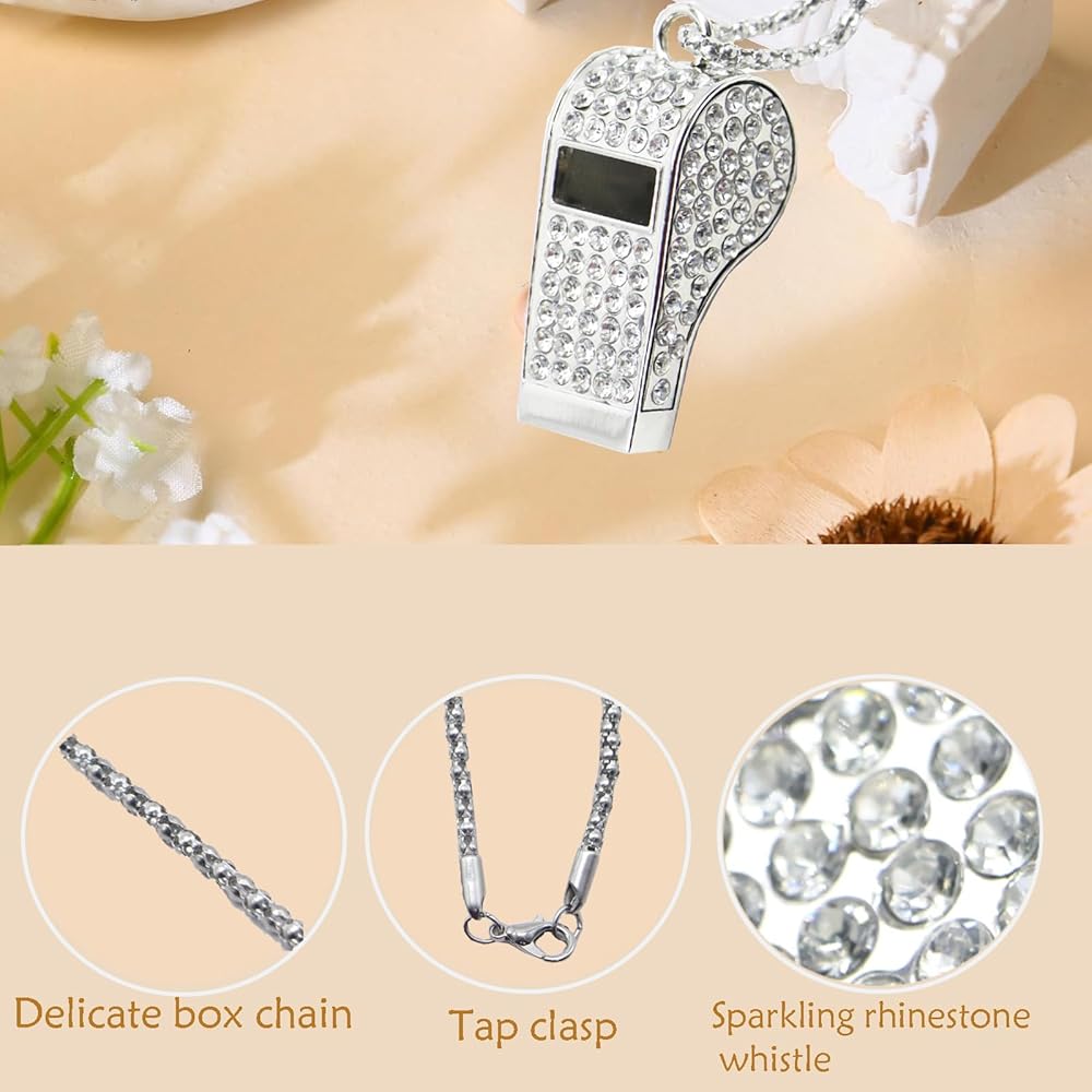• MATERIAL:Metal Crystal Rhinestone Whistle is made of shiny rhinestones and 14K gold, which is beautiful and firm and not easy to fade