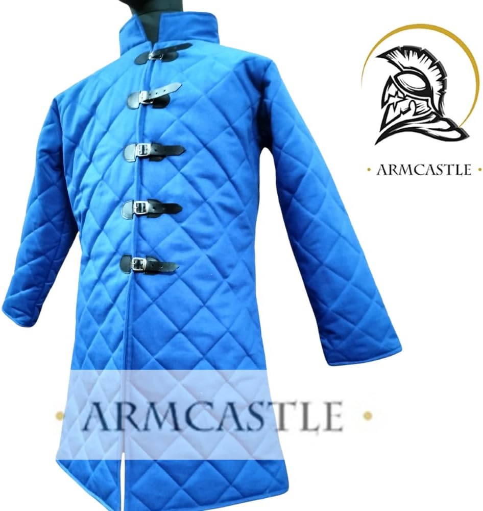 🔰Note: We can customize all the sizes, according to yours. The shade of colour can be reduced or increased due to light taken in the photo. #Note: For the best fit, measure your chest, waist, and arm length and compare with our size chart. If you fall between sizes, we recommend choosing the larger size for a comfortable fit. Embrace the spirit of the medieval era with our meticulously crafted gambeson, designed for both function and style. Whether on the battlefield or at a festival, this padded Armor will ensure you stand out with historical accuracy and modern comfort.