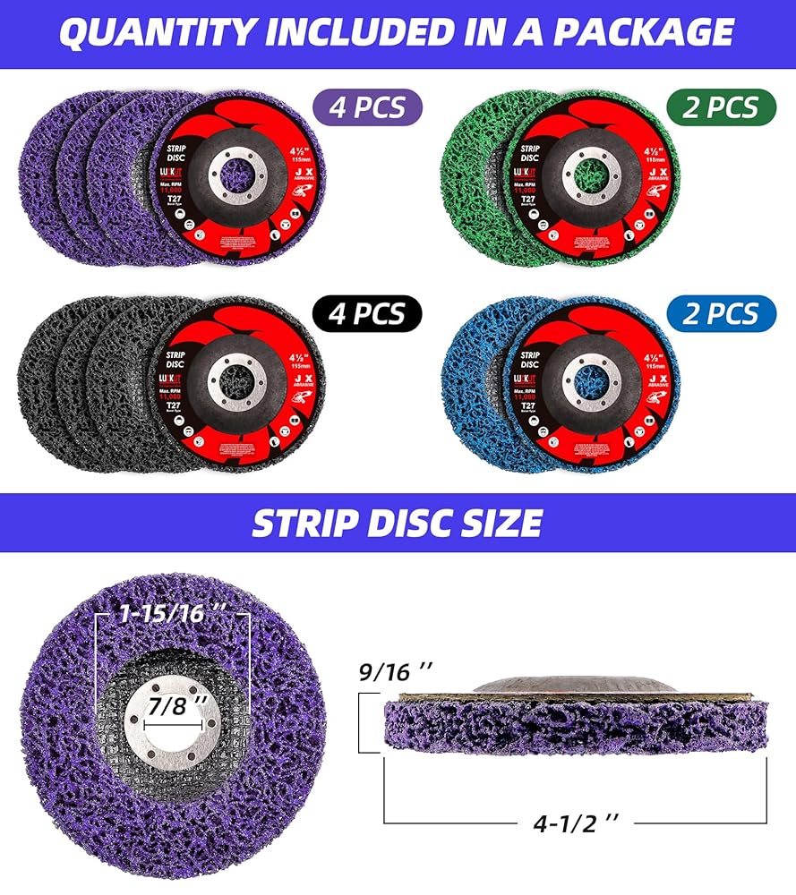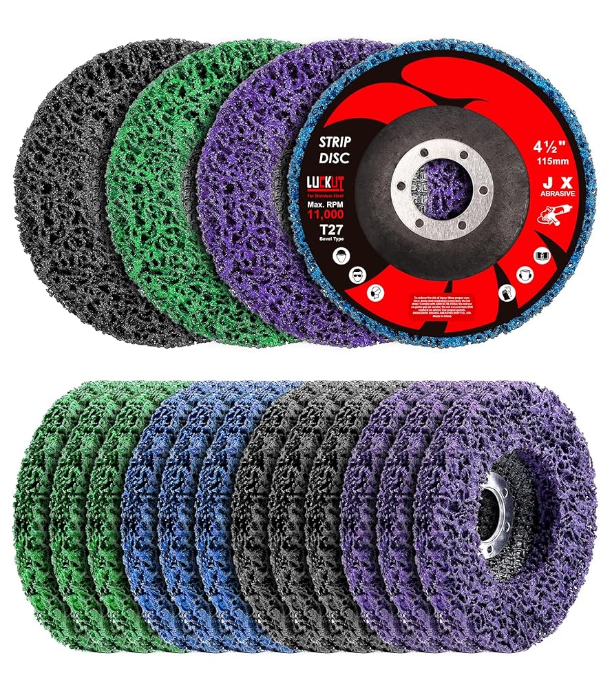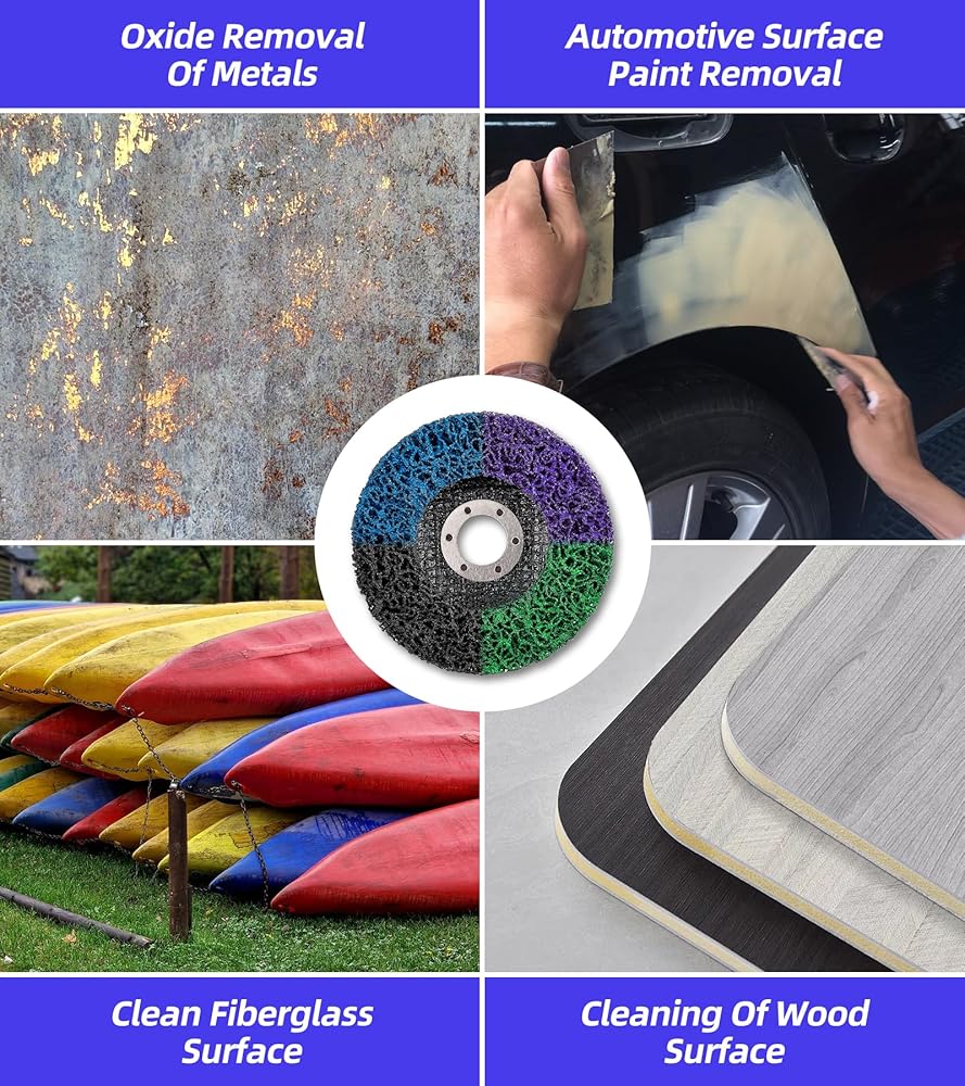 أقراص تجريد متعددة الاستخدامات: تم تصميم هذه العبوة المكونة من 12 قرصًا لتقشير الطلاء مقاس 4-1/2 بوصة × 7/8 بوصة لإزالة الصدأ والطلاء والأكسيد بكفاءة من الأسطح المعدنية والخشبية.
