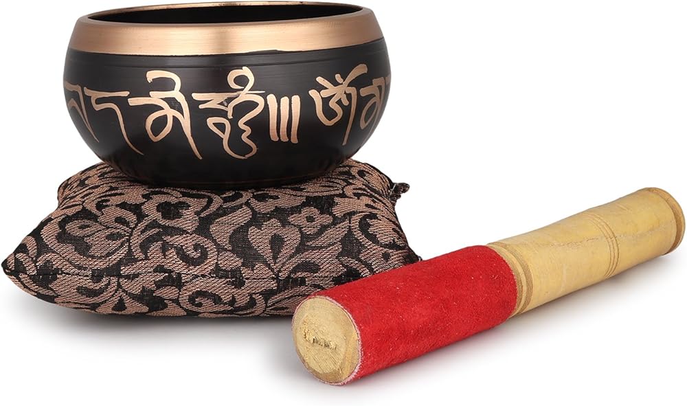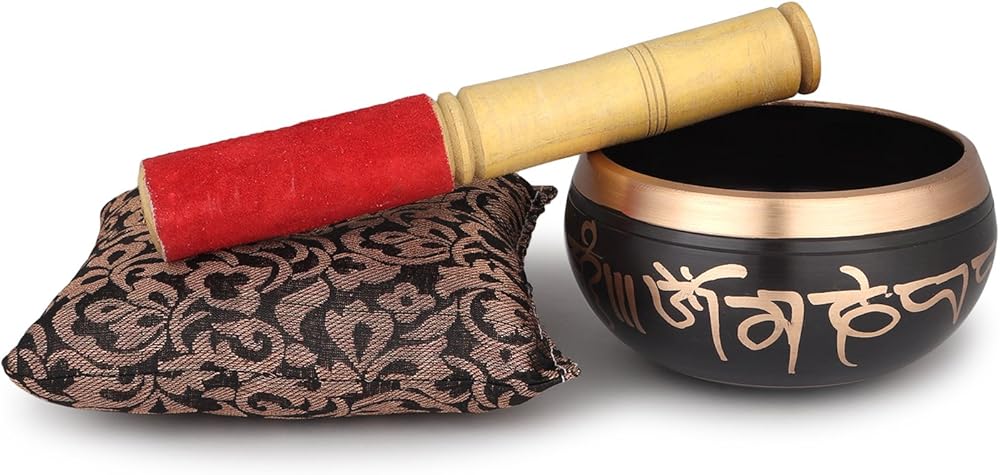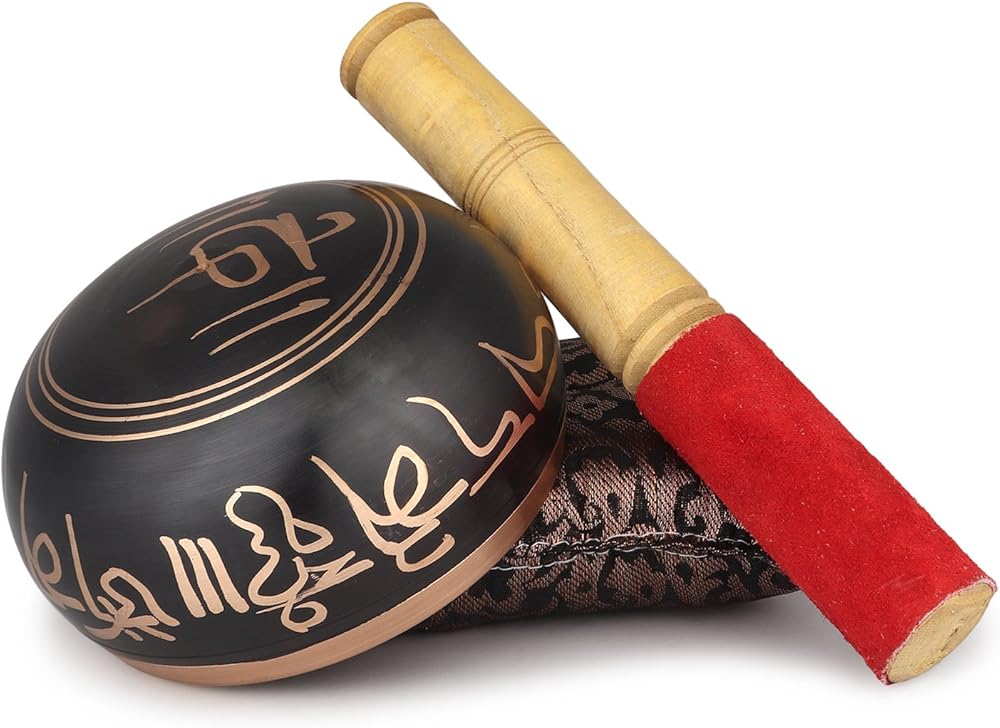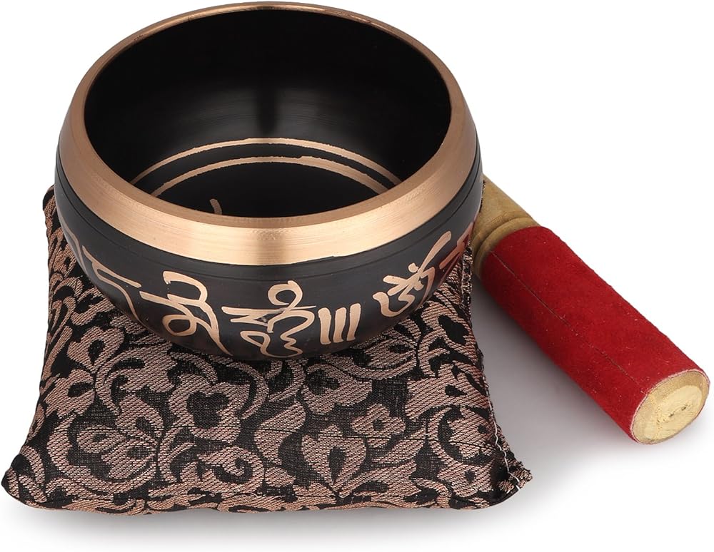 These bowls have a rich bell tone and very long sustain. Bowl is made of heavy metal, skilfully painted with our worker. You strike the bowl's rim gently with a mallet and then enjoy its healing vibrations.