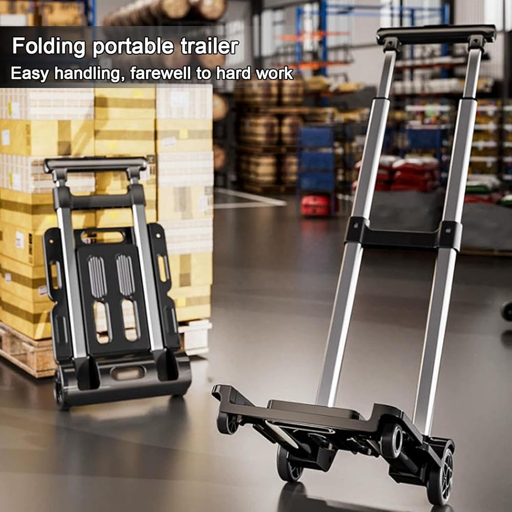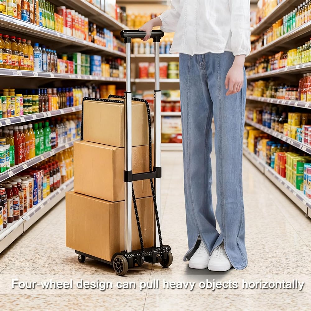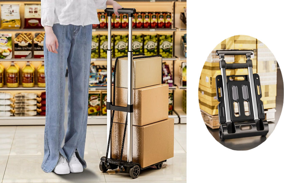 • 【عربة قابلة للطي】تتميز عربة الحمل هذه بمجموعة واسعة من الاستخدامات. يمكن استخدامها في المطارات المزدحمة والمكاتب اليومية. إنه مساعد جيد للسفر والتسوق، ومناسب للحركة، والتعامل مع البضائع، والتعامل مع الأمتعة، والتعامل مع المستودعات، والبستنة وغيرها من المشاهد. معه، يبدو الأمر كما لو كان لديك مساعد من حولك.