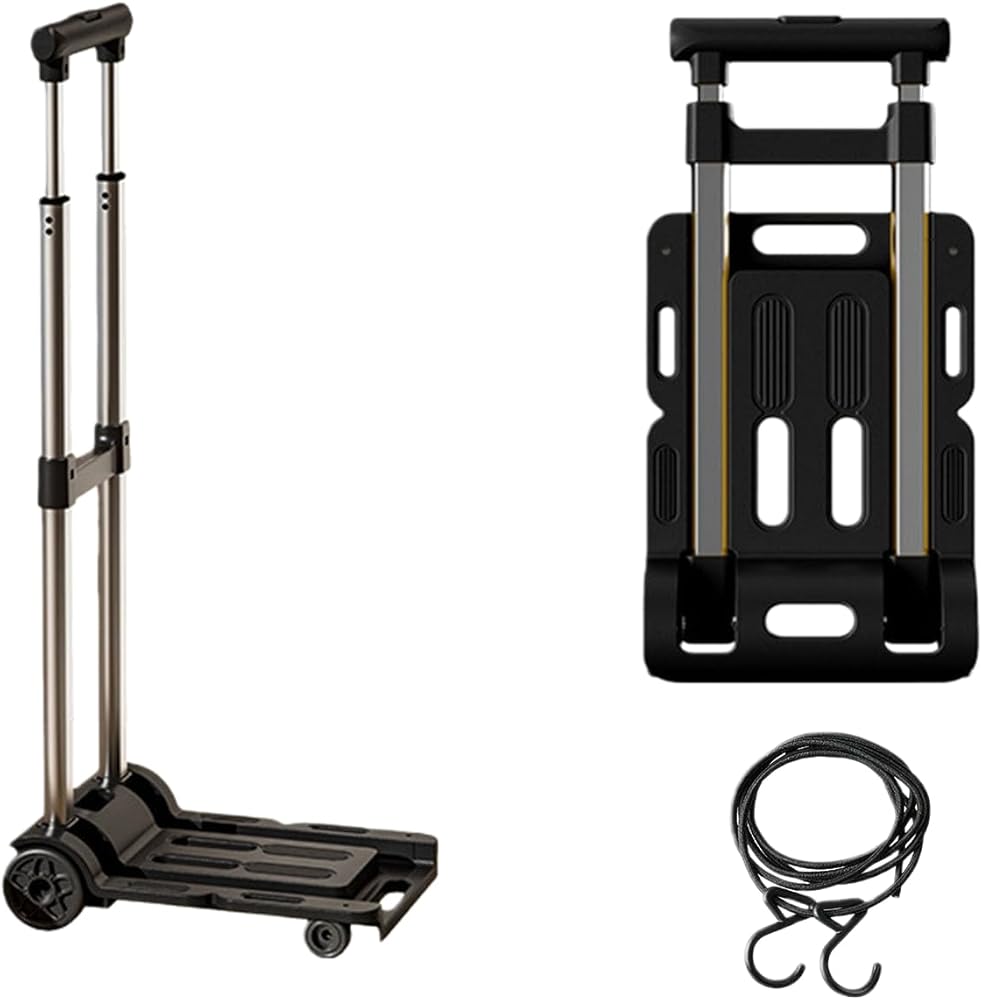 عربة أمتعة محمولة قابلة للطي دوللي للسفر خفيفة الوزن وقابلة للتعديل من سبيكة معدنية بأربعة عجلات عربة دوللي متحركة قابلة للطي (L- أسود)