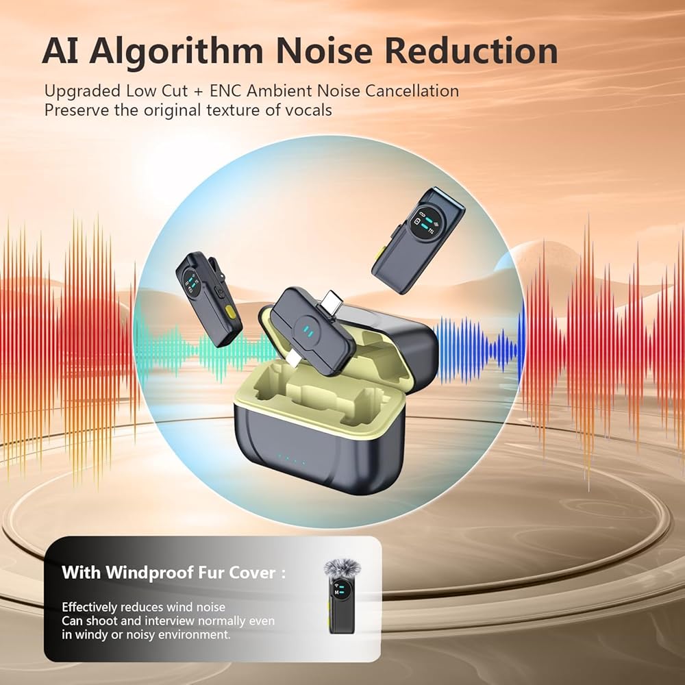 إلغاء الضوضاء بتقنية الذكاء الاصطناعي للحصول على صوت واضح للغاية: من خلال الاستفادة من خوارزميات الذكاء الاصطناعي المتقدمة، يعمل هذا الميكروفون اللاسلكي على التخلص من ضوضاء الخلفية بشكل فعال أثناء تسليط الضوء على الأغاني. مثالية للتسجيل أو المقابلات أو البث المباشر، مما يضمن بقاء صوتك واضحًا واحترافيًا في أي بيئة.
