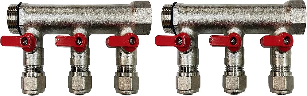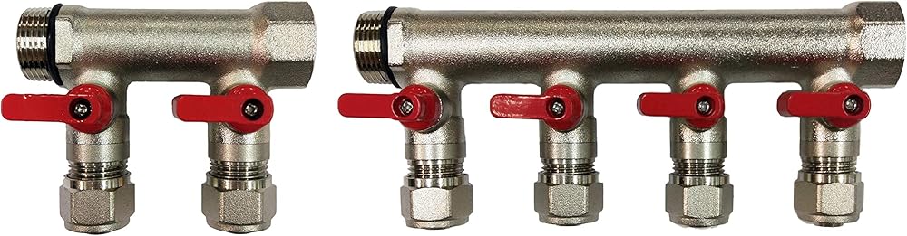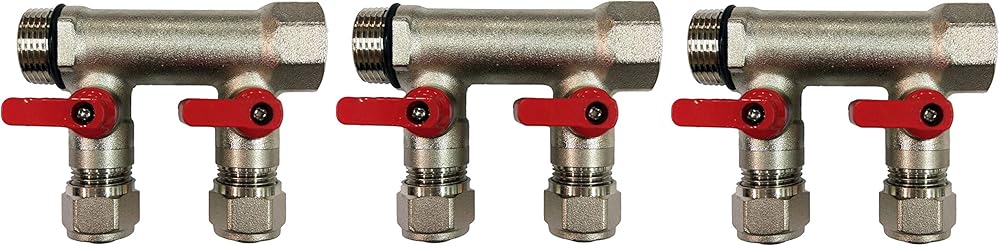 6 حلقات سباكة متعددة مع صندوق 3/4 بوصة وصمامات كروية 1/2 بوصة، مقبض أحمر