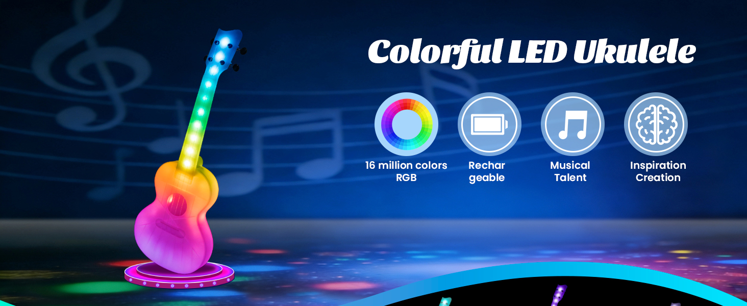 23" LED Concert Ukulele with Color Lights – Polymer Carbon Fiber Strings, Ultra-Lightweight (1.4 lbs), Perfect for Beginners, Professionals & Night Performances