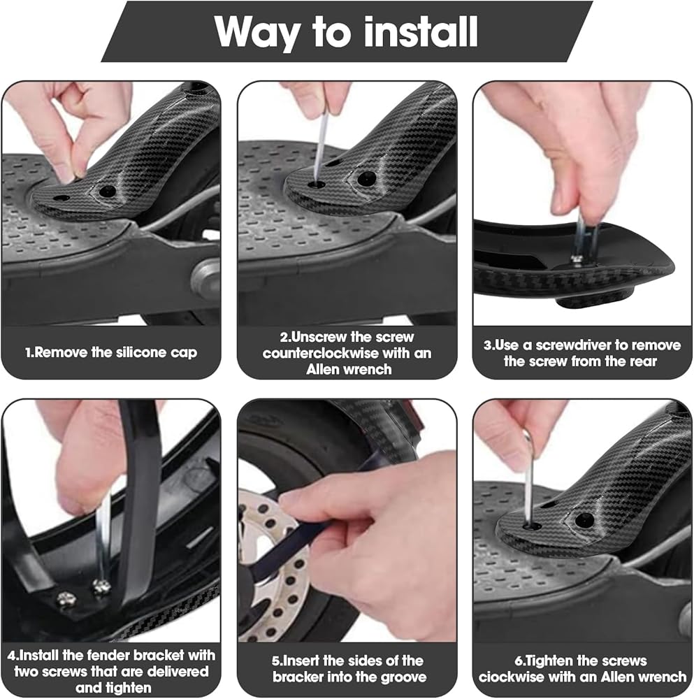 【سهلة التركيب والتفكيك】مناسبة للسكوتر الكهربائي Xiaomi M365/M365 Pro. فقط قم بفك برغي ضوء التحذير الخلفي، ثم قم بتثبيت دعامة واقي الطين على السكوتر الخاص بك باستخدام البراغي الموجودة. اضبط العناصر لضمان التثبيت الآمن. يمكنك أيضًا الرجوع إلى تعليمات التثبيت في الصور. إذا كان لديك أي أسئلة، فلا تتردد في الاتصال بنا في أي وقت.