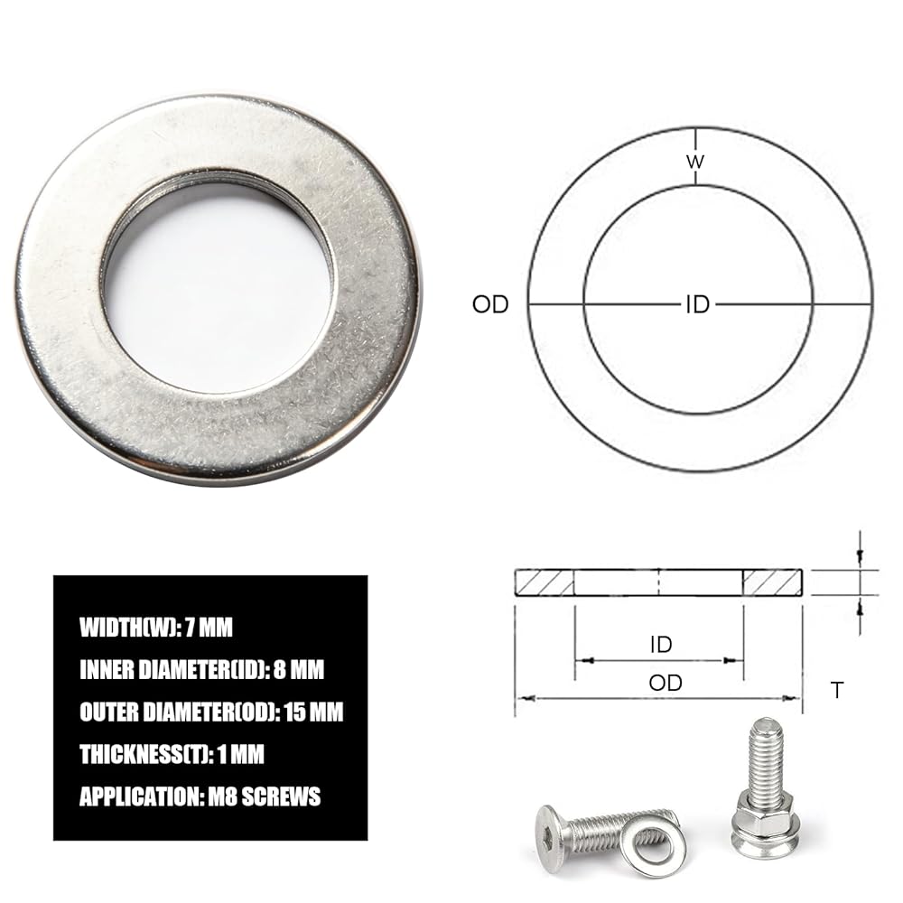 • العبوة: تتضمن مجموعة الغسالات المسطحة الصغيرة المترية هذه 100 قطعة من الغسالات المسطحة المصنوعة من الفولاذ المقاوم للصدأ للبراغي والمسامير. متوفر بمقاس واحد: M8*100 قطعة.