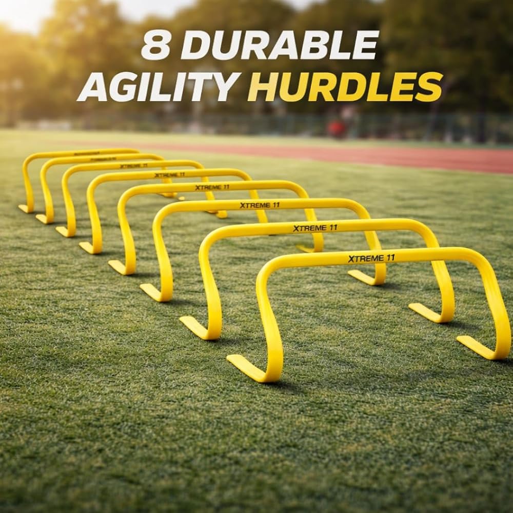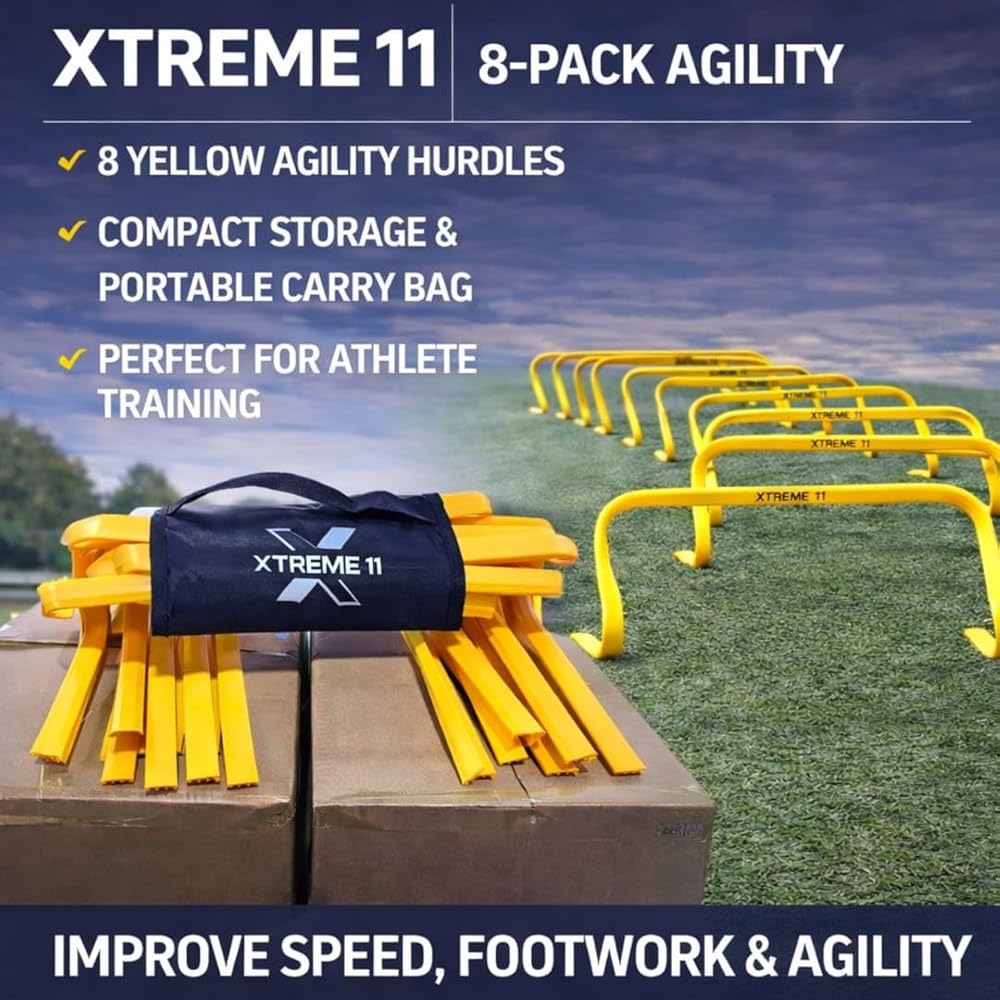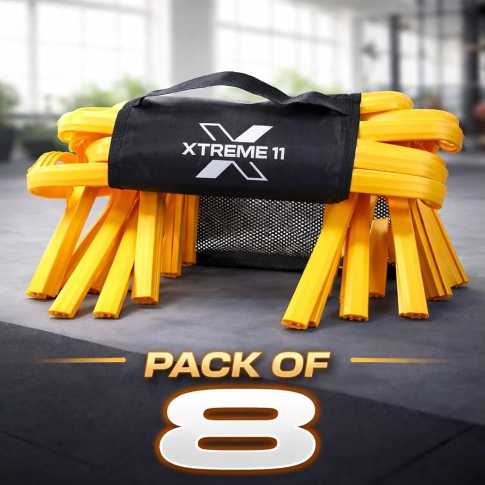 بناء سرعة ورشاقة متفجرة - عبوة من 8 حواجز ارتفاع 5.9 بوصة متعددة الاستخدامات للاستخدام في تدريبات السرعة والرشاقة؛ يمكن إعدادها في تكوينات ومسافات مختلفة لتلبية الاحتياجات المحددة ومستويات المهارة للرياضيين