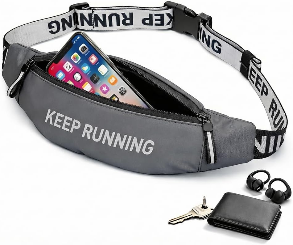 【 LARGE CAPACITY WITH ORGANIZED STORAGE】Unlike a tiny fanny pack, this slim waist pack features a smart multi-compartment design that keeps your phone, keys, cards, and cash neatly separated. The pockets fit all smartphones with cases, making it a practical phone waist pouch and running belt with phone pocket for daily workouts and outdoor use.