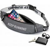 Slim Running Waist Pack for Women Men, Large Capacity Waist Belt with Organized Compartments, No-Bounce Secure Fit for Cycling, Hiking, Climbing Adventure & Reflective Safety Night Running-Gery