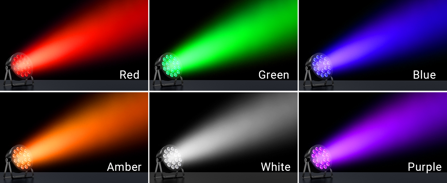 مصابيح LED عالية السطوع للمسرح (طاقة إجمالية 180 وات) - تم تجهيز كل مصباح مسرح بمصابيح RGBA LED عالية الكثافة 18 × 10 وات، مما يوفر تأثيرات غسيل فائقة السطوع ونابضة بالحياة عبر المساحات الواسعة. مثالية لأضواء المسرح وحفلات الزفاف والحفلات والكنائس وأكشاك الدي جي، تتفوق مصابيح المسرح LED هذه على علب الهالوجين مع حرارة أقل وعمر أطول.