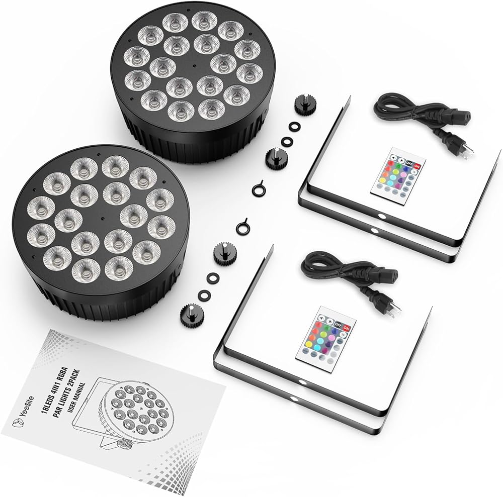 حزمة من قطعتين من مصابيح DJ Stage Par: 180 وات RGBA LED مع جهاز تحكم عن بعد وDMX - مثالية لإضاءة حفلات الزفاف، وعروض الفرقة الموسيقية الحية، وأحداث الحفلات - مزامنة الموسيقى المنشَّطة بالصوت - إضاءة سهلة التركيب للأحداث