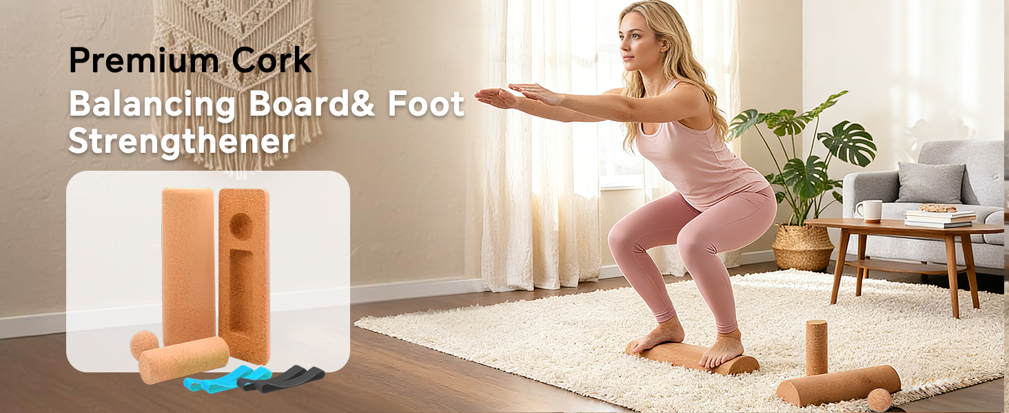 【نظام أداء متكامل للقدم 4 في 1】 تعمل مجموعة تدريب الفلين الكاملة هذه على بناء القوة والثبات والتنقل في سير عمل واحد - لوح التوازن، والأسطوانة، وكرة التدليك، وأشرطة أصابع القدم. مصمم لتصحيح الكب الزائد، وتنشيط عضلات القدم الداخلية، وتعزيز محاذاة الجزء السفلي من الجسم من أجل حركة أكثر أمانًا في الحياة اليومية والرياضة وبرامج إعادة التأهيل.