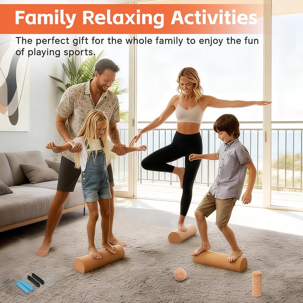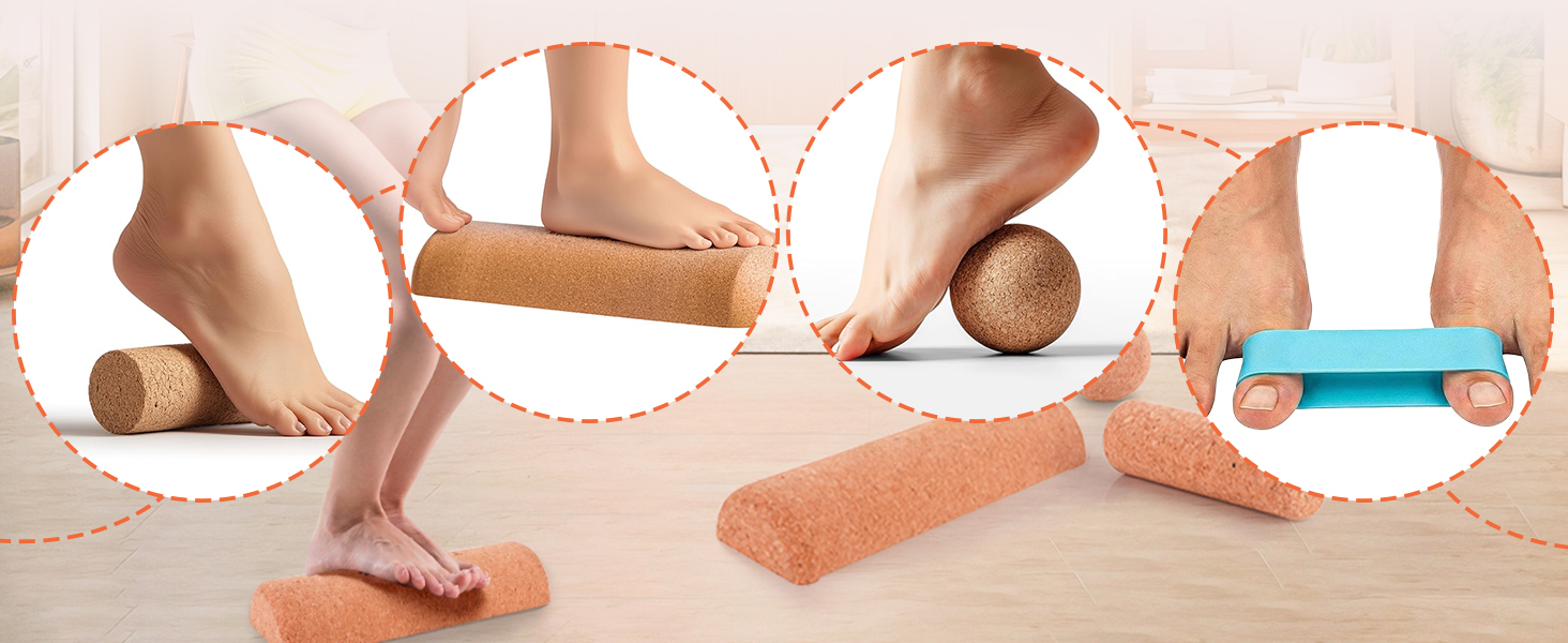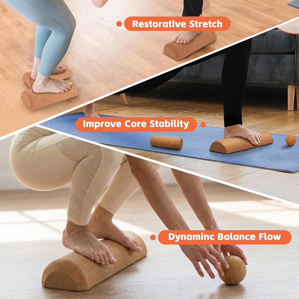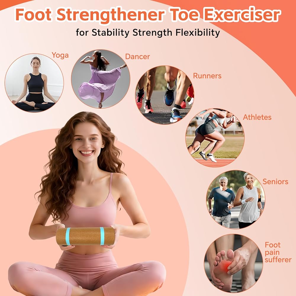 مجموعة تدريب تقوية وتوازن القدم من الفلين - نظام حركة القدم 4 في 1 مع الأسطوانة وكرة التدليك وأشرطة أصابع القدم | تحسين الاستقرار، وإصلاح الإفراط في الكب، وتعزيز التوازن واستعادة وظيفة القدم الطبيعية
